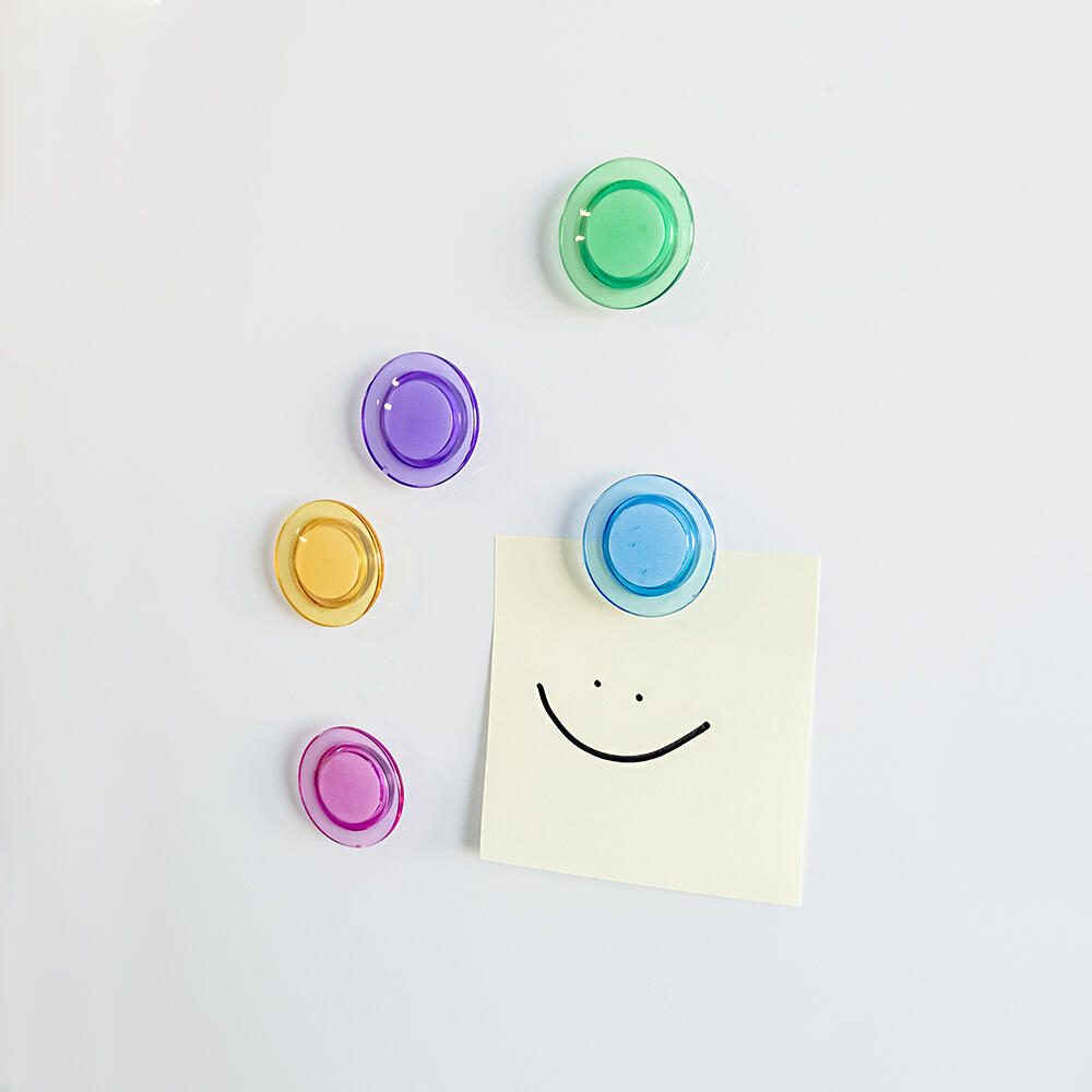 Diese Magnete haften zuverlässig auf Magnettafeln und Whiteboards, wodurch sie sich ideal für Büro, Schule oder den privaten Gebrauch eignen. Der Verzicht auf einen Griffrand sorgt für eine glatte Oberfläche, die das Handling einfach und angenehm macht.