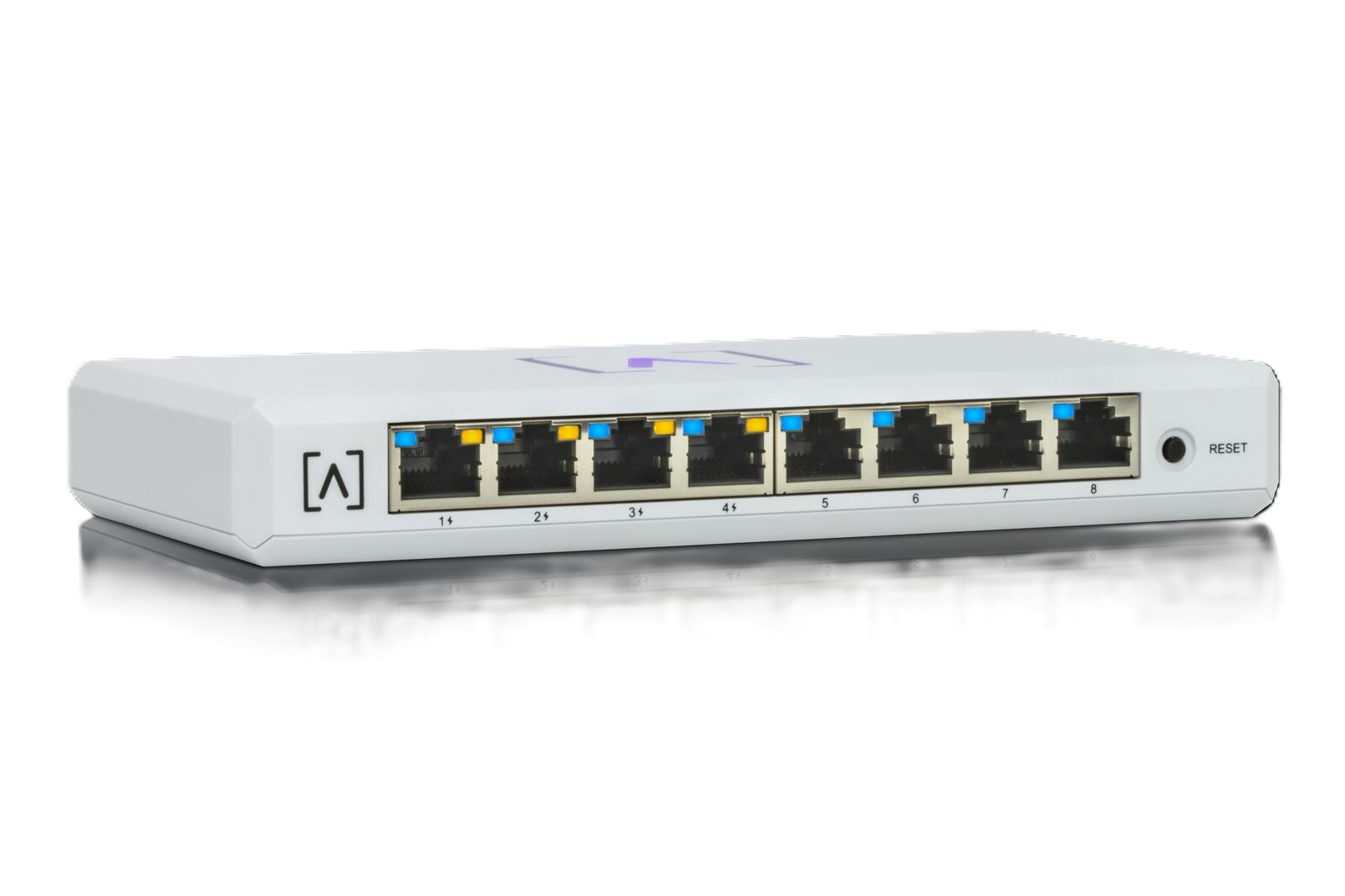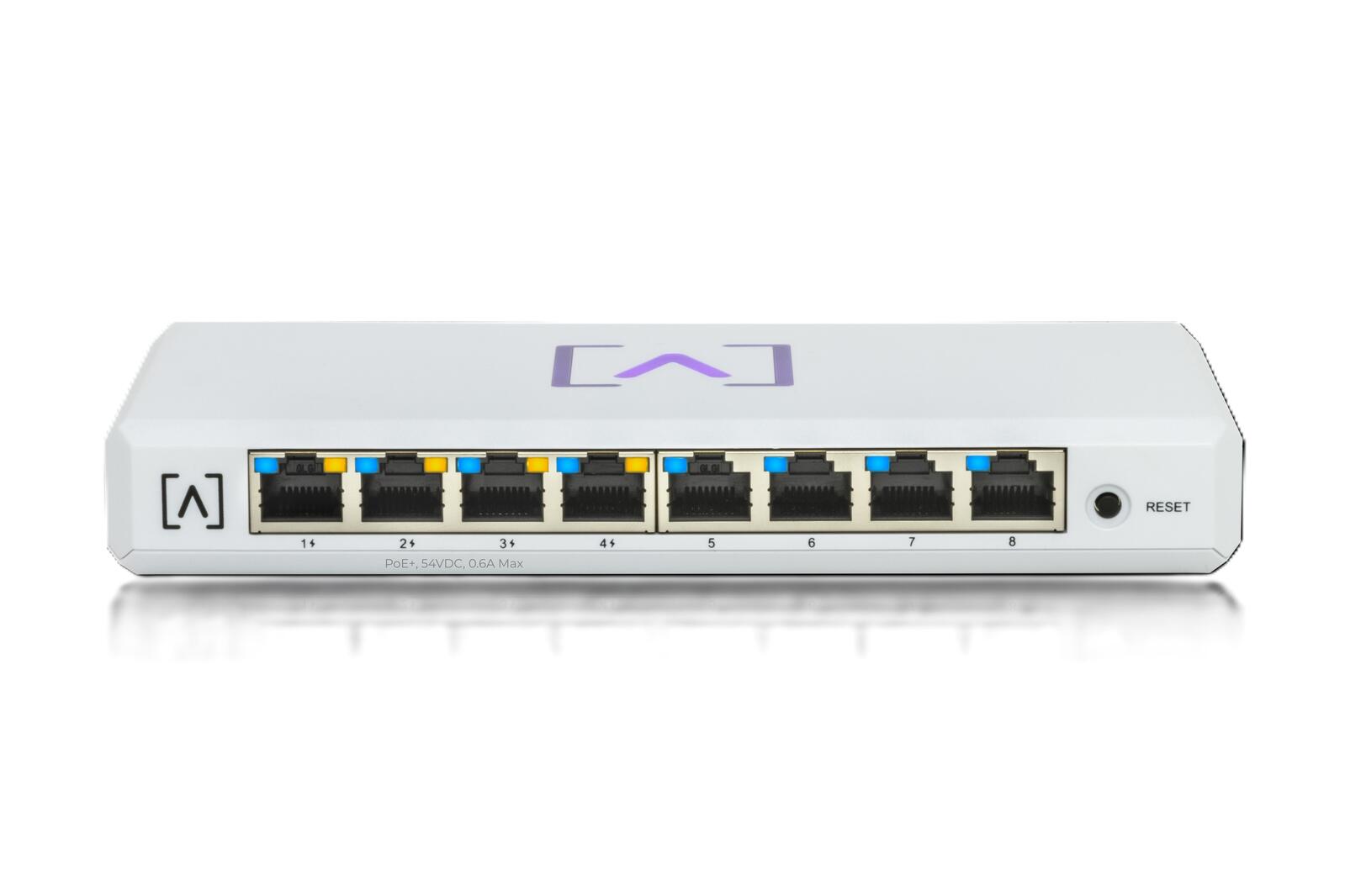 Das S8-PoE bietet vier PoE+-Ports mit einem PoE-Budget von 60 Watt. Versorgen Sie Ihre Alta Labs Access Points und andere Geräte, die die Standards 802.3at oder 802.3af unterstützen, mit Strom.