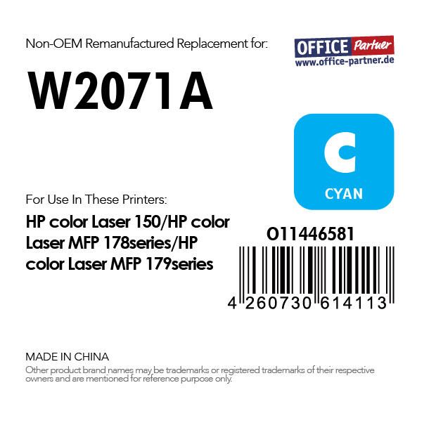 Für OFFICE-Partner Premium Toner - alternativ zu HP 117A (W2071A) - cyan
