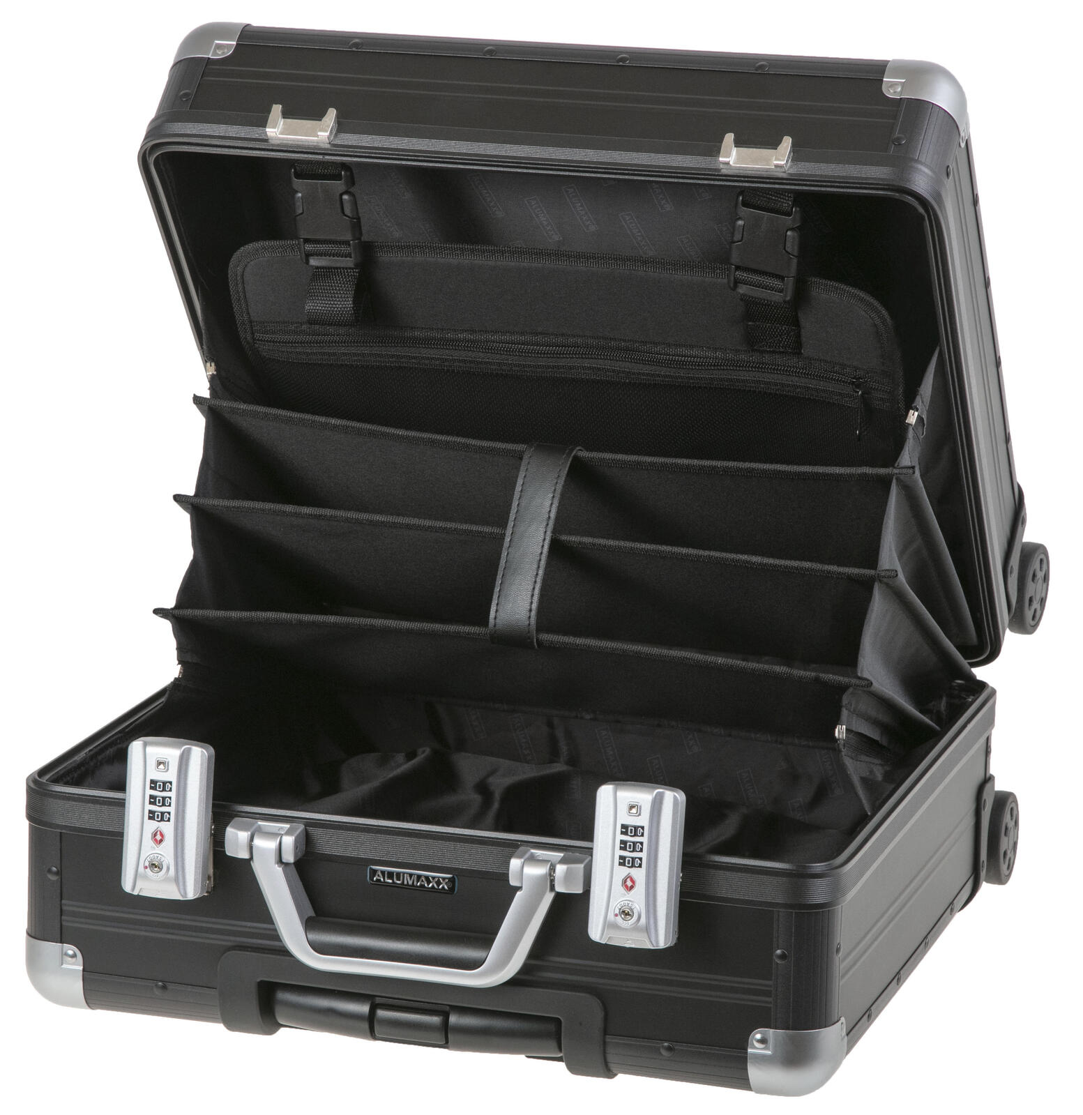 Der ALUMAXX Pilotenkoffer ist die ideale Lösung für alle, die beruflich viel unterwegs sind und dabei Wert auf Funktionalität und Stil legen. Mit seinen Außenmaßen von 42,5 x 21,0 x 40,0 cm bietet dieser Koffer ausreichend Platz für alle wichtigen Utensilien, die du für deine Reisen benötigst. Der elegante und praktische Koffer aus der GEMINI-Serie in klassischem Schwarz überzeugt durch sein ansprechendes Design und seine hochwertige Verarbeitung. Die durchdachte Innenaufteilung des ALUMAXX Pilotenkoffers ermöglicht es dir, Dokumente, Laptops und andere wichtige Gegenstände sicher und ordentlich zu verstauen. So hast du alles griffbereit und kannst dich auf das Wesentliche konzentrieren. Die robusten Materialien sorgen dafür, dass der Koffer langlebig ist und auch stärkeren Beanspruchungen standhält. Ein weiterer Vorteil dieses Pilotenkoffers ist seine Mobilität. Mit einem stabilen Tragegriff und einem praktischen Schultergurt ausgestattet, lässt er sich bequem transportieren, egal ob du im Flugzeug, im Zug oder im Auto unterwegs bist. Die schlichte Eleganz des Designs macht ihn zudem zu einem stilvollen Begleiter, der sowohl im geschäftlichen als auch im privaten Umfeld überzeugt. Der ALUMAXX Pilotenkoffer ist nicht nur funktional, sondern auch ein Statement für deinen professionellen Auftritt. Ob für Meetings, Geschäftsreisen oder den täglichen Gebrauch im Büro, dieser Koffer wird deinen Anforderungen gerecht und unterstützt dich dabei, organisiert und stilvoll zu bleiben. Erlebe die perfekte Kombination aus Praktikabilität und zeitlosem Design mit dem ALUMAXX Pilotenkoffer.Technische Daten