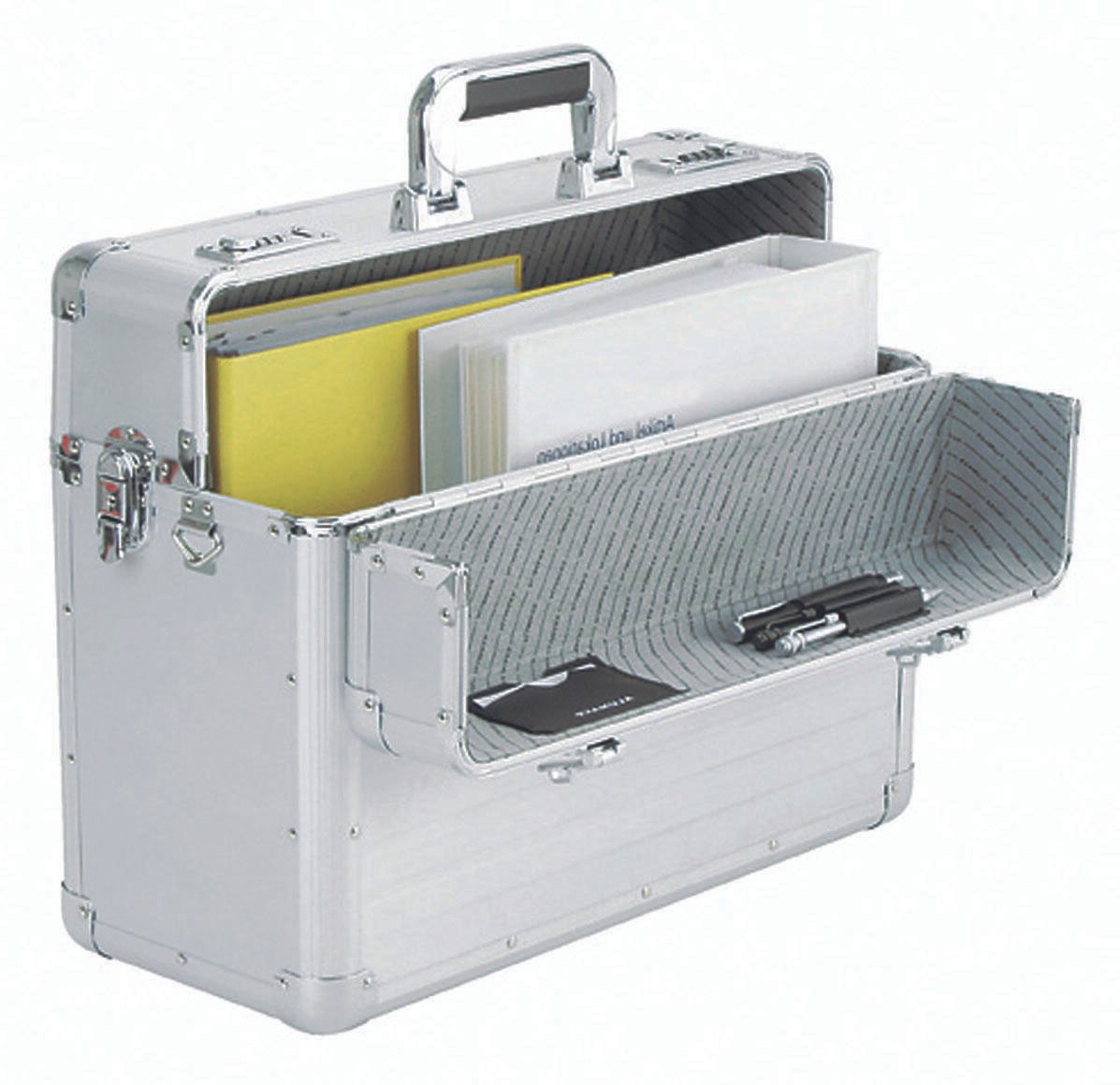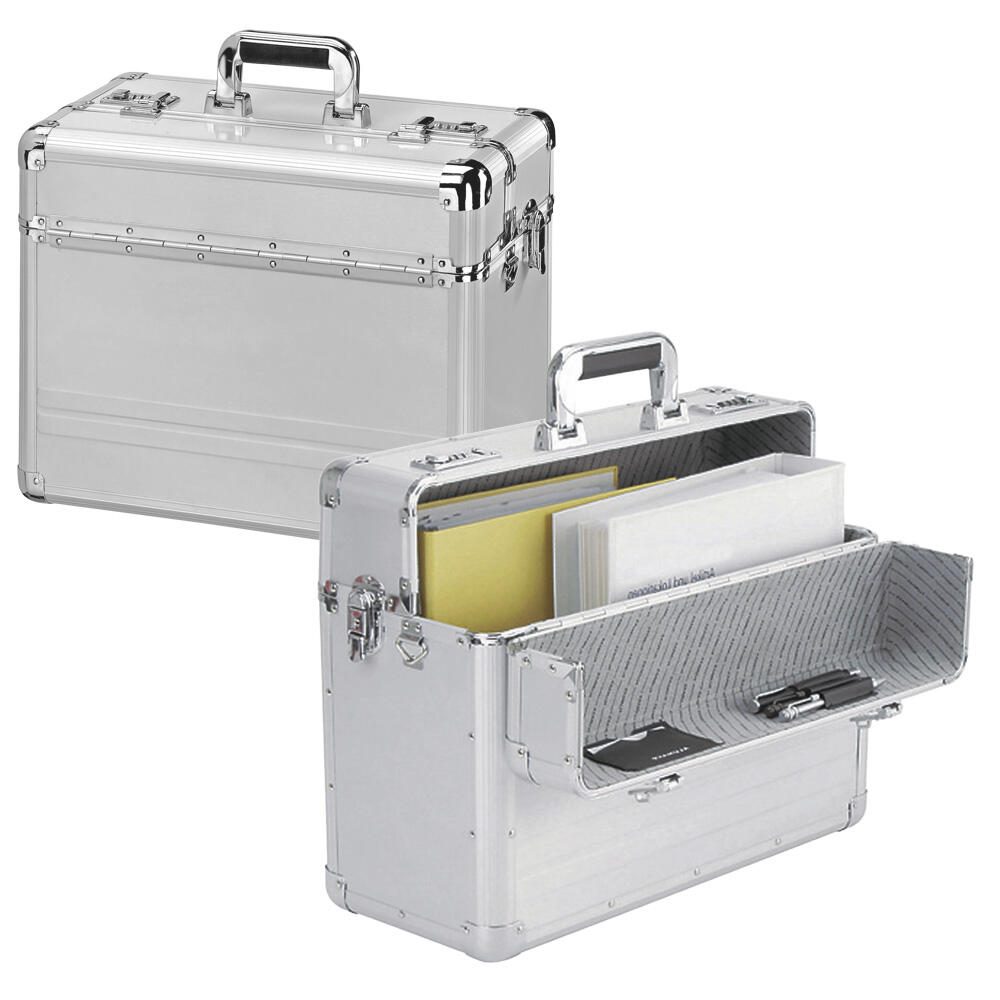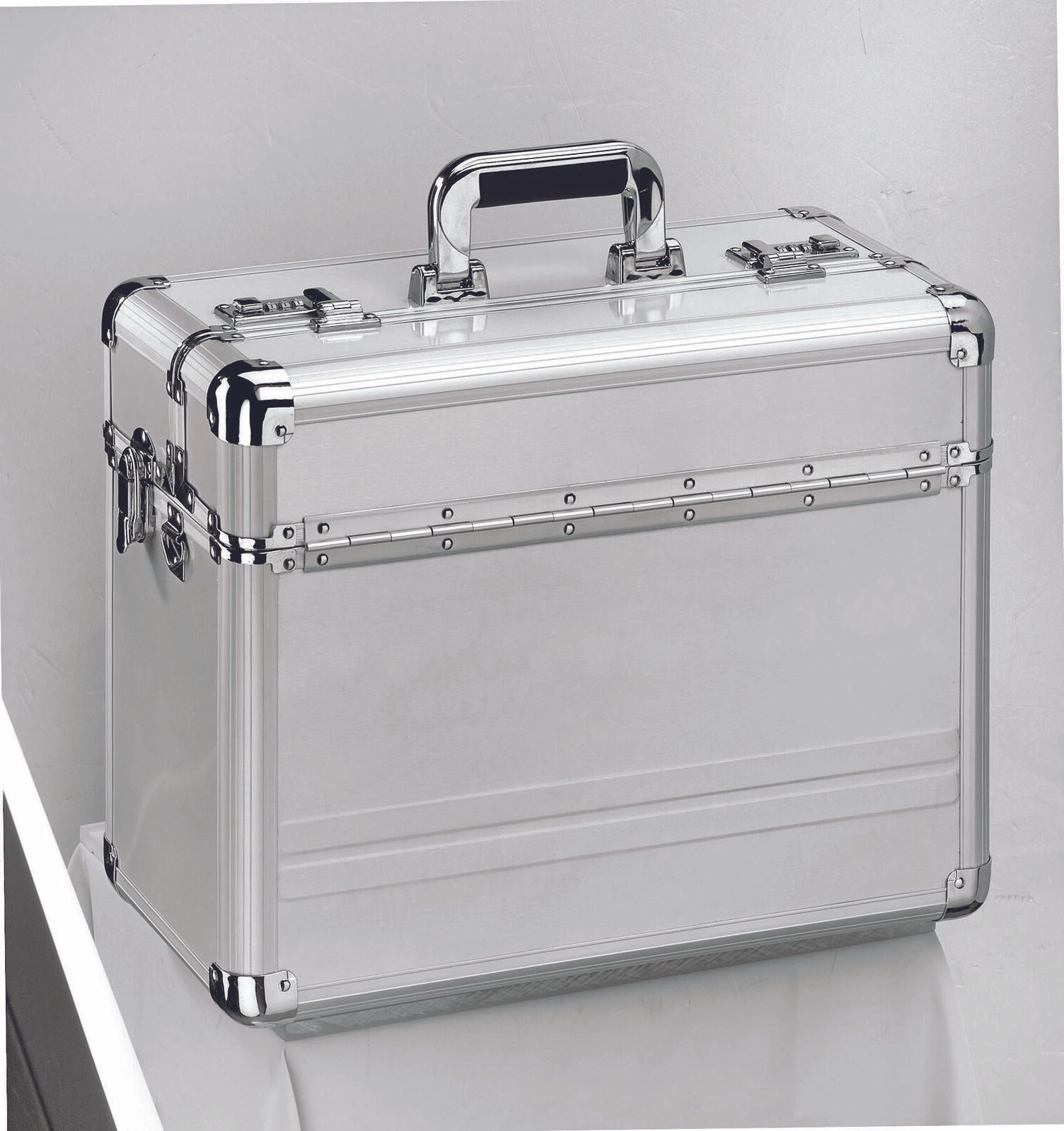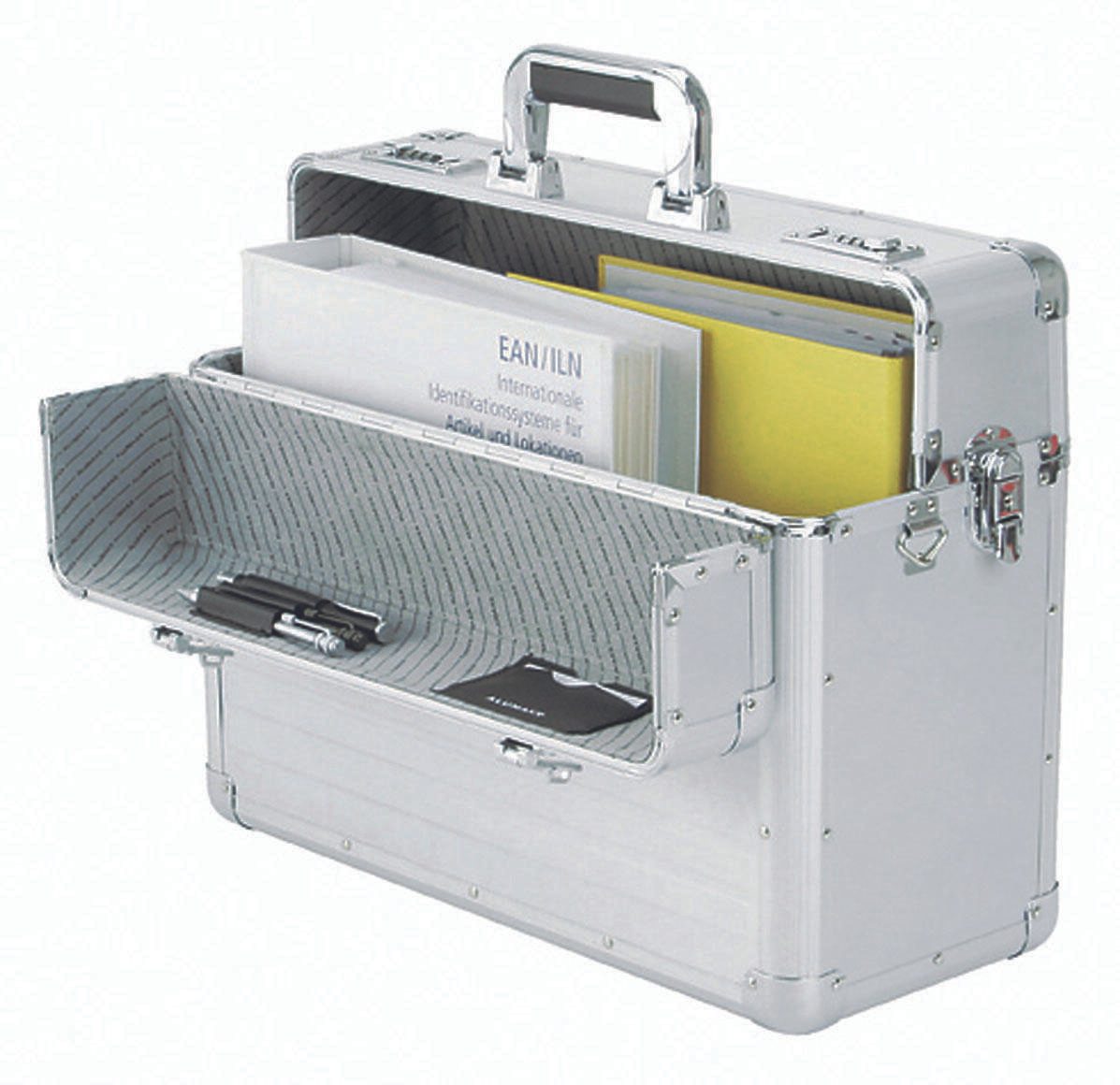 Der ALUMAXX Pilotenkoffer BETHA in elegantem Silber ist die ideale Lösung für alle, die viel unterwegs sind und ihre Arbeitsmaterialien sicher und stilvoll transportieren möchten. Mit einem Außenmaß von 47,0 x 20,0 x 38,0 cm und einem Innenmaß von 45,5 x 18,5 x 35 cm bietet dieser Koffer ausreichend Platz für Notebooks bis zu 43,2 cm (17 Zoll) sowie weiteres Zubehör. Die Ausführung des Pilotenkoffers besticht durch seitliche Schnappverschlüsse, die eine einfache Handhabung gewährleisten. Verstärkte Kanten sorgen für zusätzliche Stabilität und Langlebigkeit, während der strapazierfähige Griff den Transport angenehm macht. Das glatte Aluminium-Material verleiht dem Koffer nicht nur ein modernes und ansprechendes Design, sondern schützt auch vor äußeren Einflüssen. Im Inneren des Koffers findest du praktische Stifteschlaufen für bis zu drei Schreibgeräte sowie zwei Fächer für Visitenkarten, die eine optimale Organisation deiner Unterlagen ermöglichen. Der ALUMAXX Pilotenkoffer BETHA ist somit nicht nur funktional, sondern auch ein stilvolles Accessoire für Berufstätige, die Wert auf Qualität und Design legen. Mit diesem Pilotenkoffer bist du bestens ausgestattet, um deine wichtigen Dokumente und technischen Geräte sicher zu transportieren. Egal, ob im Büro, auf Reisen oder bei Kundenbesuchen, der ALUMAXX Pilotenkoffer BETHA bietet dir die perfekte Kombination aus Funktionalität und Eleganz.Technische Daten