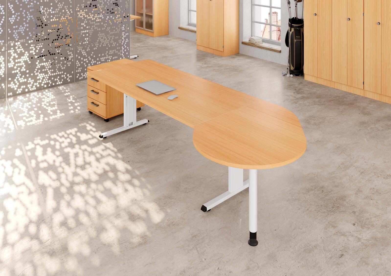 Der HAMMERBACHER Anbautisch höhenverstellbar VLA81/6/W in der ansprechenden Farbe Buche ist die perfekte Ergänzung für deinen Arbeitsplatz. Dieser vielseitige Anbautisch ist speziell für die Hammerbacher Schreibtischserien OS, FS, US, ZS, AS und YS konzipiert und bietet dir die Möglichkeit, deine Arbeitsumgebung individuell zu gestalten. Mit seinen großzügigen Maßen von 103 cm in der Breite und 80 cm in der Tiefe bietet der Tisch ausreichend Platz für deine Unterlagen und Arbeitsmaterialien. Die Tischplatte besteht aus hochwertiger Spanplatte, die nicht nur stabil, sondern auch pflegeleicht ist. Der elegante weiße Stahlrahmen sorgt für eine moderne Optik und gewährleistet gleichzeitig die nötige Stabilität. Die Kombination aus der warmen Buche der Tischplatte und dem klaren Weiß des Gestells schafft ein harmonisches Gesamtbild, das in jedes Büroambiente passt. Ein herausragendes Merkmal dieses Anbautisches ist die Höhenverstellbarkeit, die es dir ermöglicht, die Tischhöhe nach deinen individuellen Bedürfnissen anzupassen. Dies fördert nicht nur eine ergonomische Haltung während der Arbeit, sondern kann auch dazu beitragen, Verspannungen und Rückenschmerzen vorzubeugen. Ob im Sitzen oder Stehen, der HAMMERBACHER Anbautisch passt sich flexibel an deine Arbeitsweise an. Die Tropfenform des Tisches bietet nicht nur eine ästhetische Note, sondern ermöglicht auch eine optimale Raumnutzung. So kannst du den Anbautisch problemlos in verschiedene Bürokonzepte integrieren. Mit dem HAMMERBACHER Anbautisch VLA81/6/W investierst du in ein Möbelstück, das Funktionalität, Design und Ergonomie vereint und somit einen wertvollen Beitrag zu deinem Arbeitsalltag leistet.Technische Daten