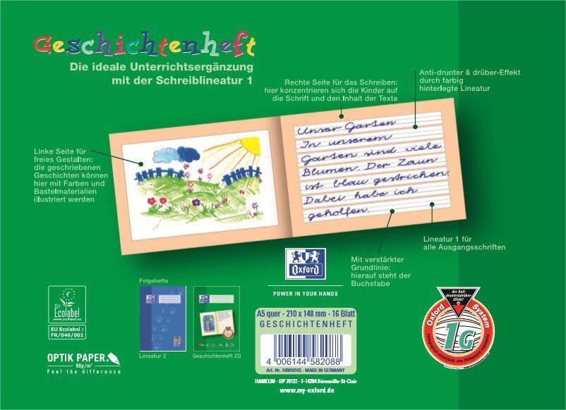 OXFORD Schreiblernhefte Anfängerheft A5quer 16BL Lin1G liniert DIN A5 quer 16