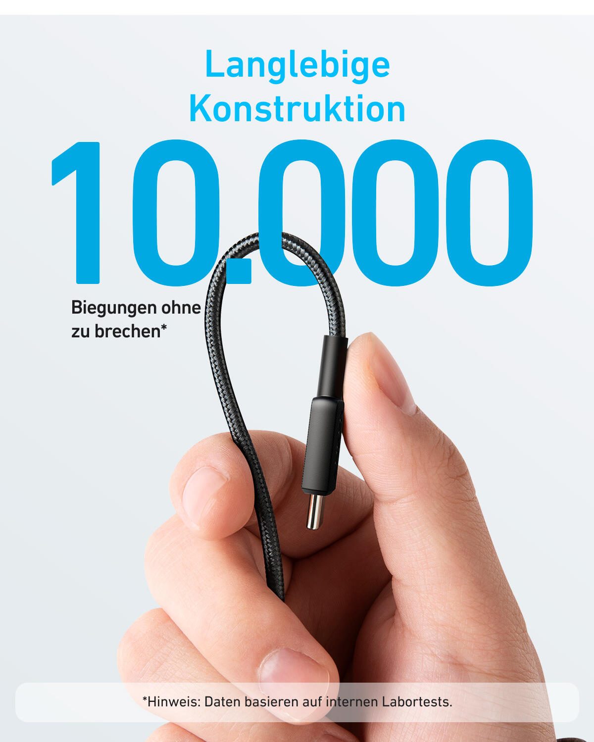 Dieses Kabel ist so konstruiert, dass es bis zu 10.000 Biegungen standhält – so ist es für alles gewappnet.
