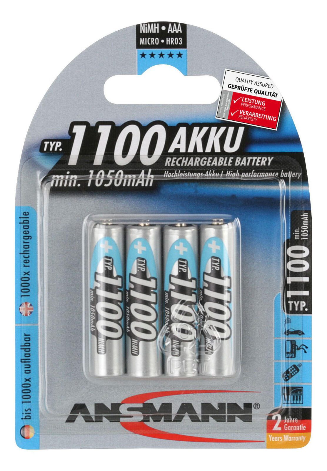 Die ANSMANN Akkus Micro AAA 1.2 V sind die ideale Lösung für alle, die eine zuverlässige und leistungsstarke Energiequelle benötigen. Diese hochwertigen Nickel-Metallhydrid (Ni-MH) Akkus sind nicht nur umweltfreundlich, sondern auch extrem vielseitig einsetzbar. Sie eignen sich perfekt für eine Vielzahl von Geräten, darunter Taschenlampen, Spielzeug, Modellbau, Spielekonsolen, Digitalkameras, Blitzgeräte und medizinische Geräte. Mit einer Kapazität, die es dir ermöglicht, deine Geräte stets mit Energie zu versorgen, wirst du die Vorteile dieser Akkus schnell zu schätzen wissen. Ein herausragendes Merkmal der ANSMANN Akkus ist ihre Wiederaufladbarkeit. Du kannst sie bis zu 1.000 Mal wieder aufladen, was sie zu einer kosteneffizienten und nachhaltigen Wahl macht. Anstatt ständig neue Einweg-Batterien zu kaufen, kannst du mit diesen Akkus Geld sparen und gleichzeitig die Umwelt schonen. Die Akkus kommen im praktischen 4er-Pack, sodass du immer genügend Energie zur Verfügung hast, wenn du sie benötigst. Die ANSMANN Akkus Micro AAA sind kompatibel mit zahlreichen Batterietypen, einschließlich Micro AAA, LR 3, LR 03, MN2400, HR3, HR03 und FR3. Diese Vielseitigkeit macht sie zu einer ausgezeichneten Wahl für jeden Haushalt oder jedes Büro. Egal, ob du eine schnelle Energiequelle für dein Spielzeug oder eine zuverlässige Stromversorgung für deine Digitalkamera benötigst, diese Akkus liefern die Leistung, die du erwartest. Vertraue auf die Qualität und die Innovationskraft von ANSMANN und erlebe die Vorteile der Micro AAA Akkus 1.2 V. Sie bieten nicht nur eine hervorragende Leistung, sondern auch die Sicherheit, dass deine Geräte immer betriebsbereit sind.Technische Daten