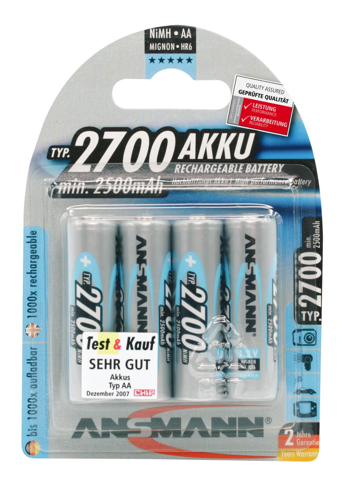 Die ANSMANN Akkus Mignon AA 1.2 V sind die ideale Energiequelle für eine Vielzahl von Geräten, die du täglich nutzt. Diese hochwertigen Akkus bieten eine zuverlässige Leistung und sind besonders umweltfreundlich, da sie bis zu 1.000 Mal wiederaufladbar sind. Mit einer Kapazität von 2500 mAh sind sie perfekt für den Einsatz in Taschenlampen, Spielzeug, Modellbau, Spielekonsolen, Digitalkameras, Blitzgeräten und medizinischen Geräten geeignet. Das System der ANSMANN Akkus basiert auf Nickel-Metallhydrid (Ni-MH), was ihnen eine hervorragende Stabilität und Langlebigkeit verleiht. Diese Technologie sorgt dafür, dass die Akkus auch bei längerer Nutzung ihre Leistung beibehalten und eine hohe Anzahl an Ladezyklen durchlaufen können. Du profitierst von einer konstanten Energieversorgung, die dir hilft, deine Geräte effizient zu betreiben, ohne ständig neue Batterien kaufen zu müssen. Die Akkus sind in der gängigen Mignon AA Größe erhältlich und entsprechen den Typen LR 6, LR 06, MN1500, HR6, HR06 und FR6. Diese Vielseitigkeit macht sie zu einer ausgezeichneten Wahl für alle, die auf der Suche nach einer leistungsstarken und langlebigen Energiequelle sind. Dank ihrer breiten Anwendbarkeit sind sie für viele verschiedene Geräte geeignet, sodass du sie in nahezu allen Bereichen des täglichen Lebens einsetzen kannst. In einer Packung erhältst du vier Akkus, die dir nicht nur Kosten sparen, sondern auch dazu beitragen, die Umwelt zu schonen. Die ANSMANN Akkus Mignon AA 1.2 V sind somit eine nachhaltige und praktische Lösung für deine Energiebedürfnisse.Technische Daten