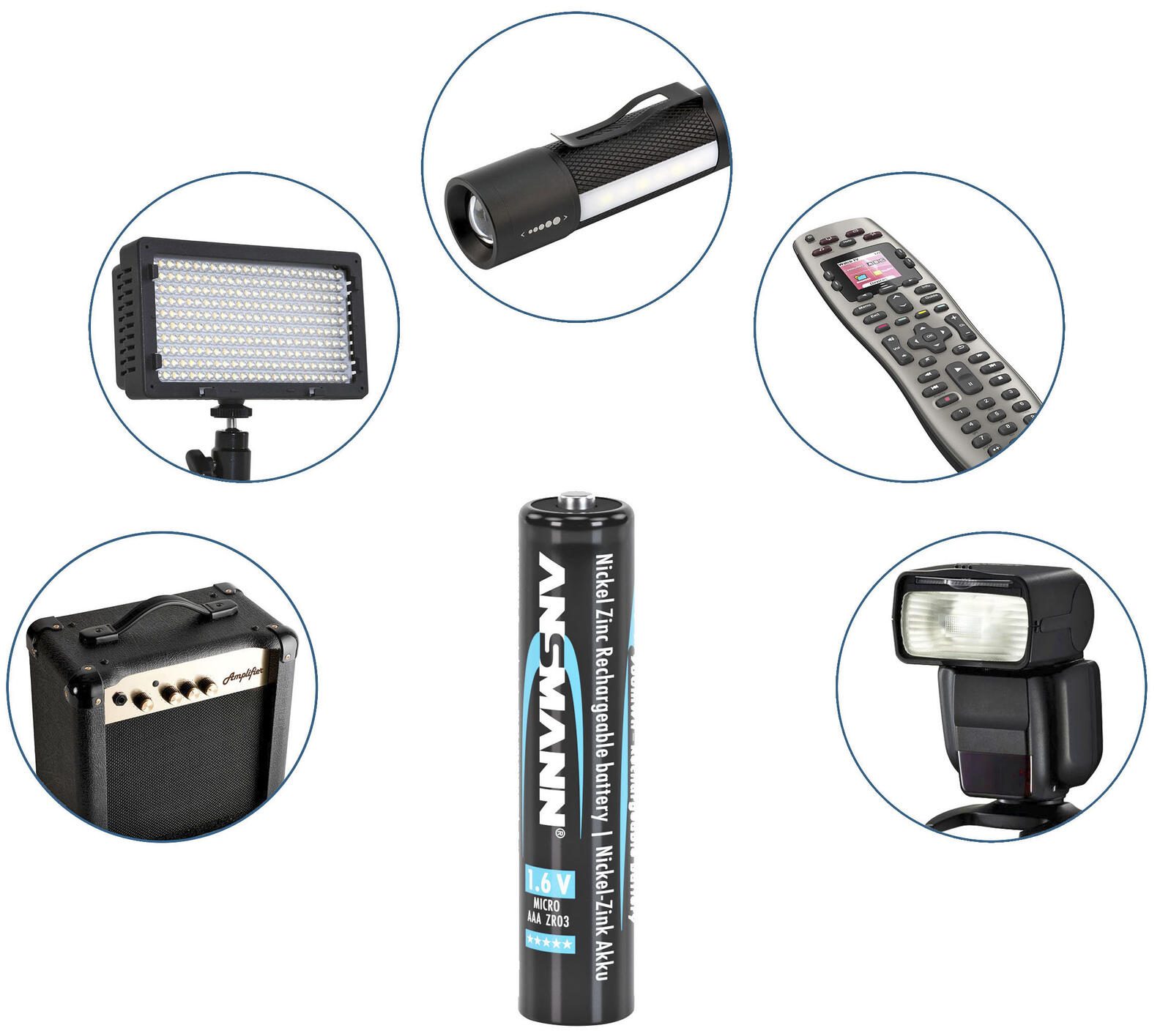 Die ANSMANN Akkus Micro AAA 1.6 V sind die ideale Lösung für alle Geräte mit hohem Energiebedarf. Diese leistungsstarken Akkus, die auch unter den Bezeichnungen Micro AAA, LR 3, LR 03, MN2400, HR3, HR03 und FR3 bekannt sind, bieten eine zuverlässige Energiequelle für eine Vielzahl von Anwendungen. Dank des fortschrittlichen Nickel-Zink (NiZn) Systems zeichnen sich diese Akkus durch eine hohe Energiedichte und eine lange Lebensdauer aus. Mit bis zu 1.000 Ladezyklen sind die ANSMANN Akkus nicht nur umweltfreundlich, sondern auch wirtschaftlich. Du kannst sie immer wieder aufladen und so die Kosten für Einweg-Batterien erheblich senken. Das 4er-Pack stellt sicher, dass du immer genügend Energie für deine Geräte zur Verfügung hast, sei es für Spielzeuge, Fernbedienungen oder andere elektronische Geräte, die viel Energie benötigen. Die ANSMANN Akkus Micro AAA 1.6 V sind speziell für den Einsatz in Geräten mit hohem Energiebedarf konzipiert. Du profitierst von einer konstanten Leistung und einer schnellen Ladezeit, sodass du jederzeit bereit bist, deine Geräte zu verwenden. Die kompakte Größe der Akkus macht sie zudem besonders praktisch und vielseitig einsetzbar. Entscheide dich für die ANSMANN Akkus Micro AAA 1.6 V und erlebe die Vorteile einer zuverlässigen und langlebigen Energiequelle. Mit ihrer hohen Kapazität und der Fähigkeit, wiederholt aufgeladen zu werden, sind sie die perfekte Wahl für alle, die Wert auf Nachhaltigkeit und Leistung legen.Technische Daten