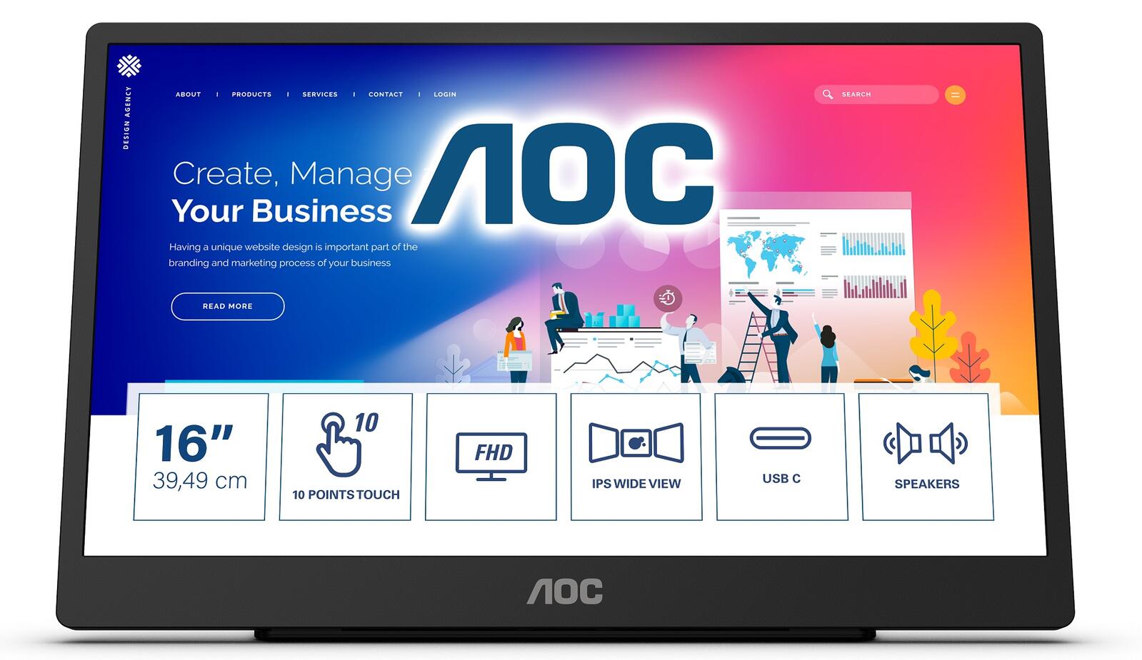 AOC 16T2 portabler Touch Monitor 39,49 cm (15,6 Zoll)