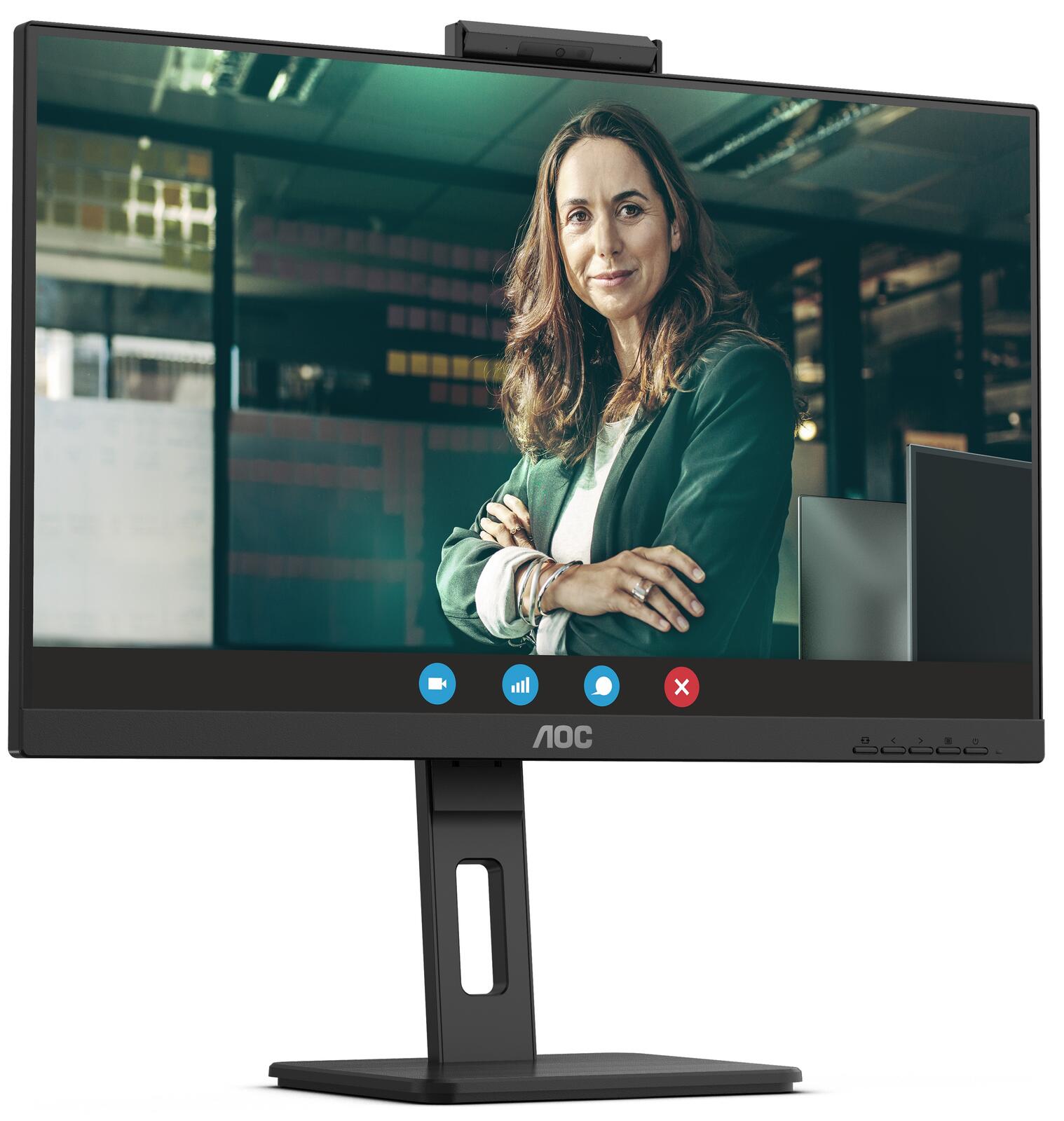 AOC 24P3CW Monitor 60,5 cm (23,8 Zoll) Full HD, IPS, 4ms, HDMI, DisplayPort, USB-C, USB-Hub, RJ45, Webcam
