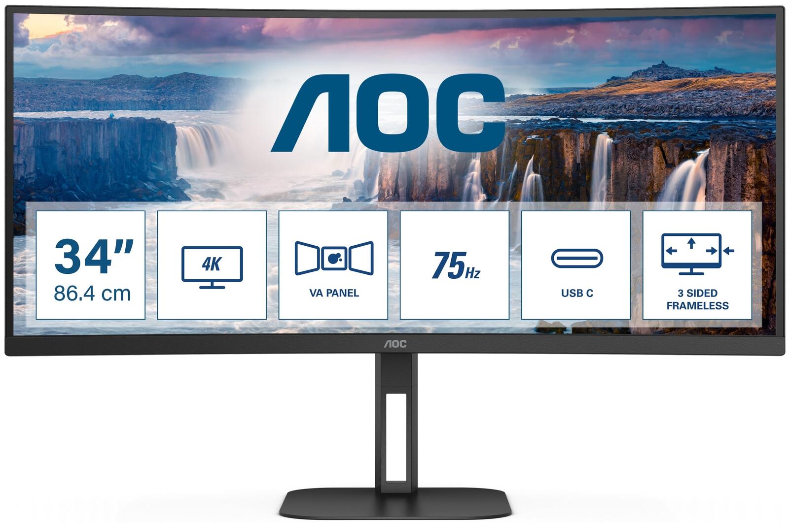 AOC CU34V5C/BK Curved Monitor 86,4 cm (34 Zoll) UWQHD, VA, 4ms, 100Hz, HDMI, DisplayPort, USB-C, USB-A, FreeSync
