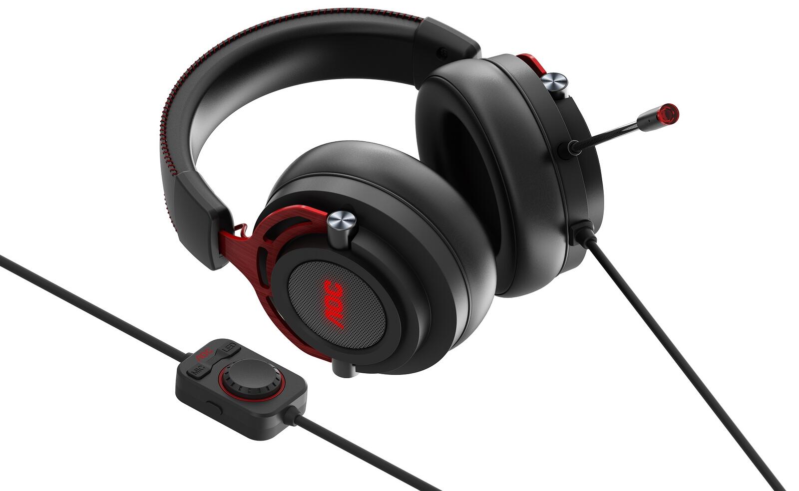 Abgekündigt AOC GH300 Gaming Headset USB 2.0, 7.1 Virtual Surround Sound mit Hi-Fi-Audio, RGB Hintergrundbeleuchtung