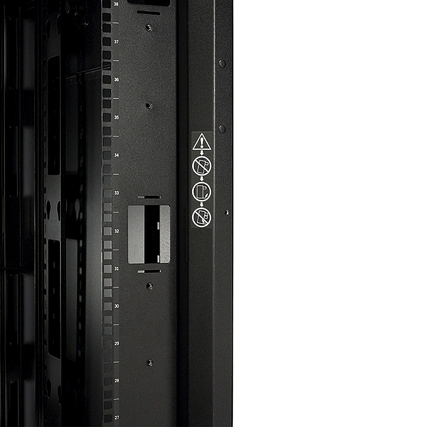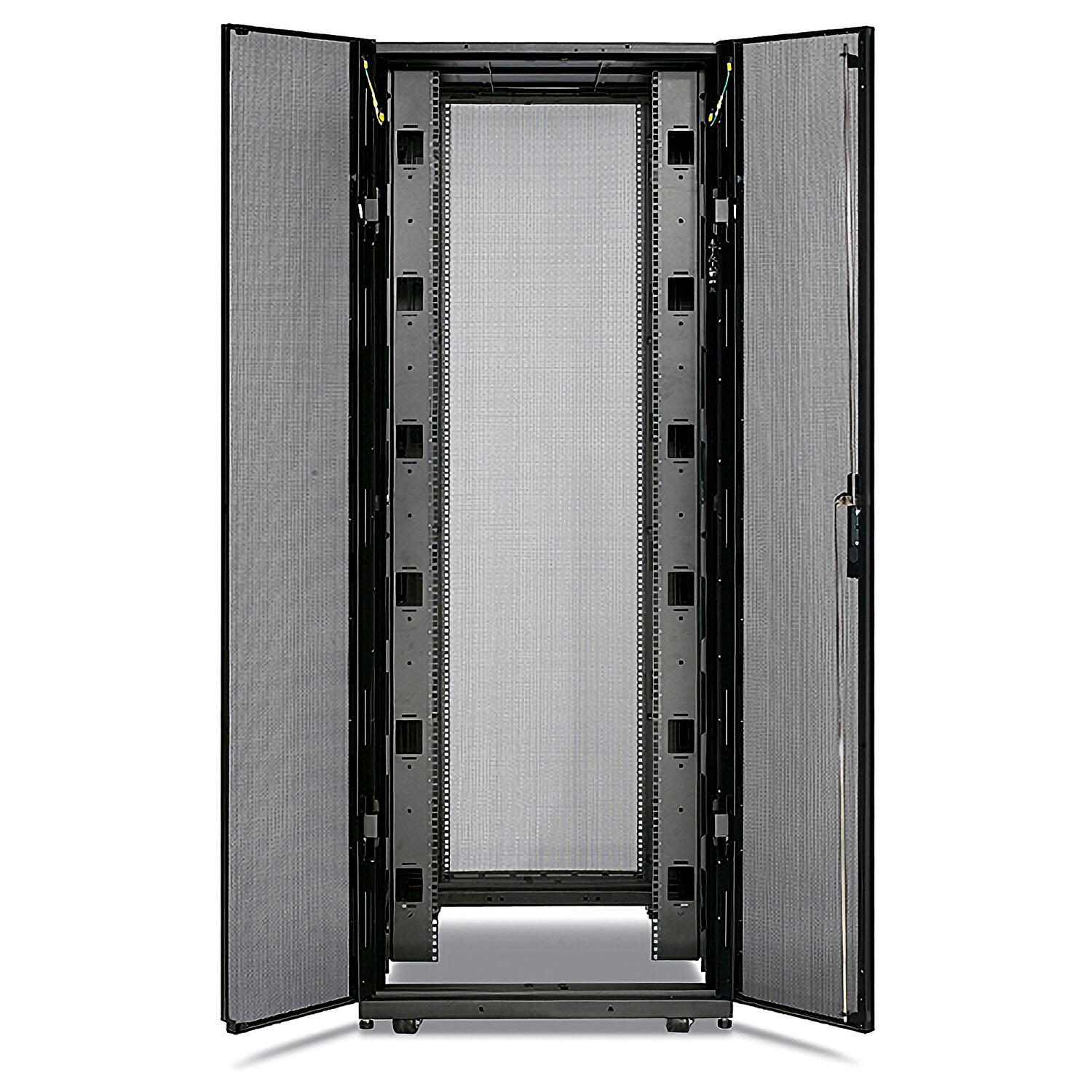 Server-Rack nach Industriestandard für Umgebungen mit mittlerer bis hoher Dichte und einer Höhe, die problemlos durch Standardtüren passt. Das breite Rack-Design bietet neben den vertikalen Montageschienen zusätzlichen Platz für die Kabelführung von vorne nach hinten im Gehäuse. Es bietet genügend Freiraum auf der Rückseite für Rack-PDUs und Kabelmanager, um die Hot-Swap-Komponenten von IT-Geräten nicht zu beeinträchtigen. Die Breite ist ideal für konvergente und hyperkonvergente IT, die eine Mischung aus Server, Speicher und Netzwerk-Switches in einem Rack umfasst.