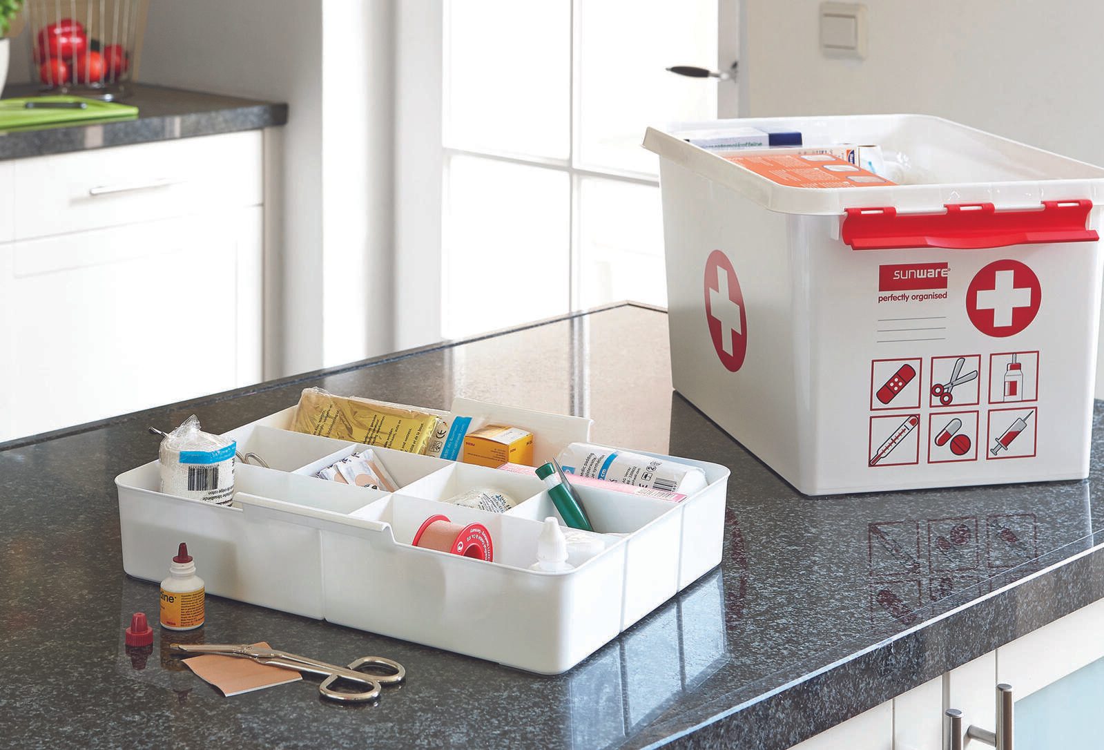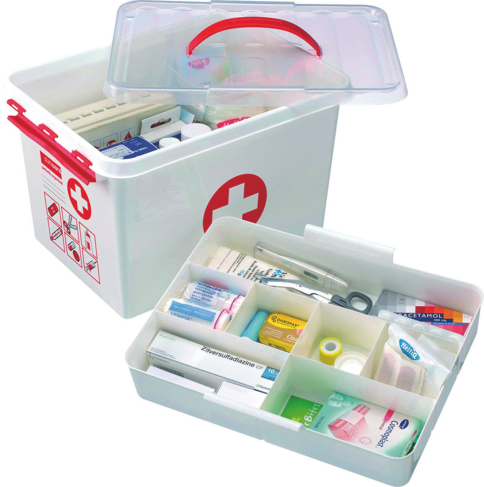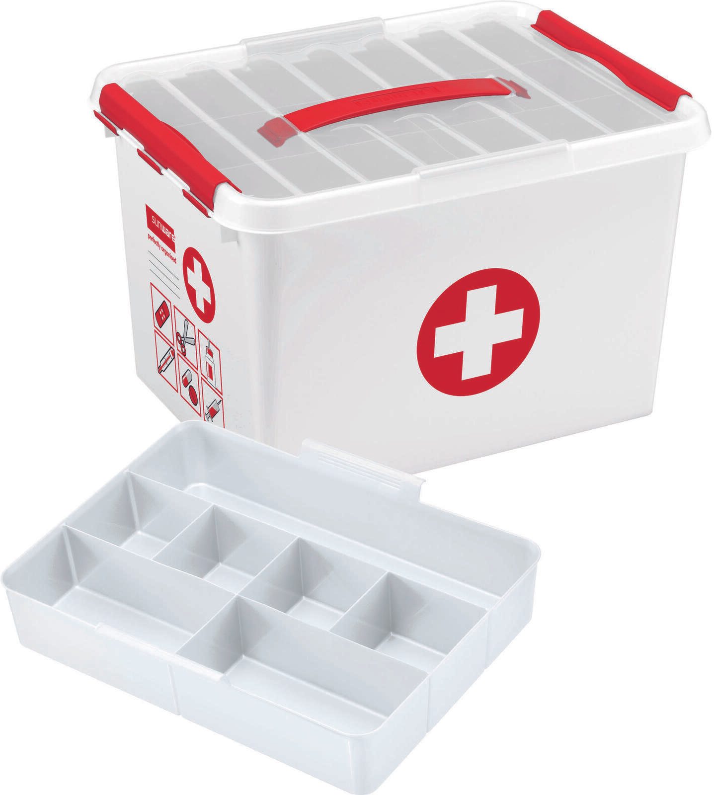 sunware® Erste-Hilfe-Box the q-line 22,0 l - 40,0 x 30,0 x 26,0 cm weiß/rot