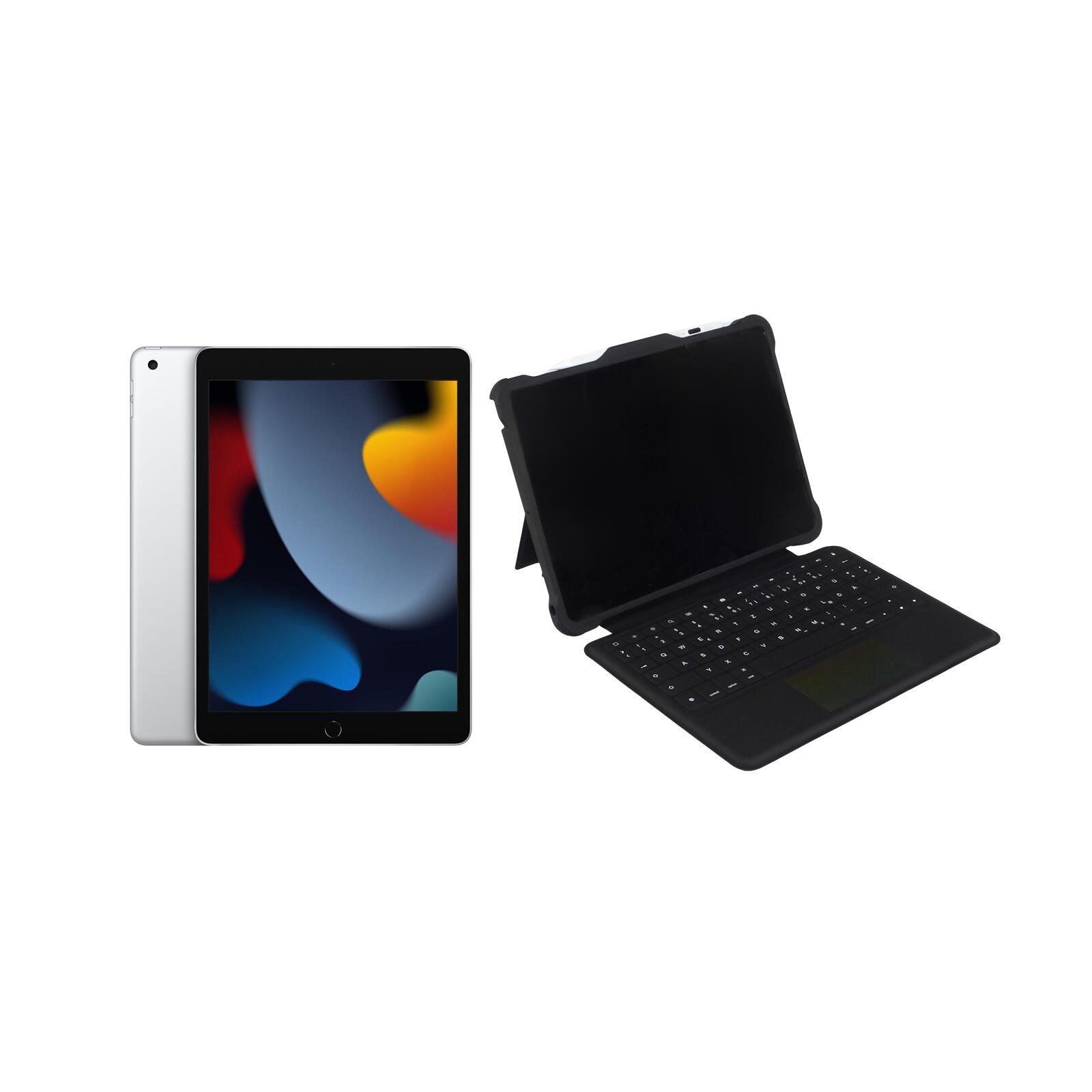Apple iPad (10,2") Wi-Fi 256GB silber + @Keycase Smart Hülle mit Tastatur A13 Bionic Chip, 9. Generation, 2021 - Smart Connector Verbindung, kein Aufladen erforderlich