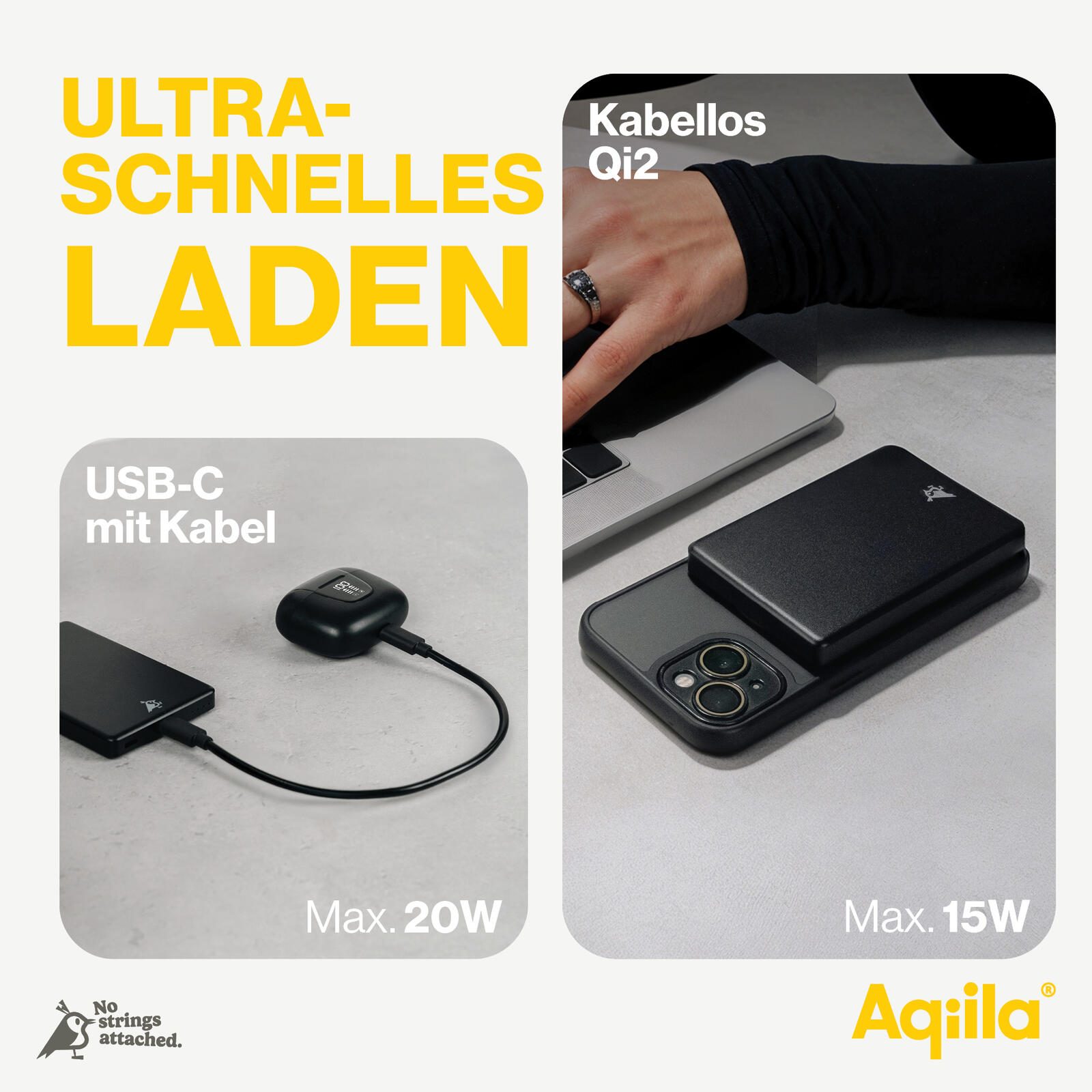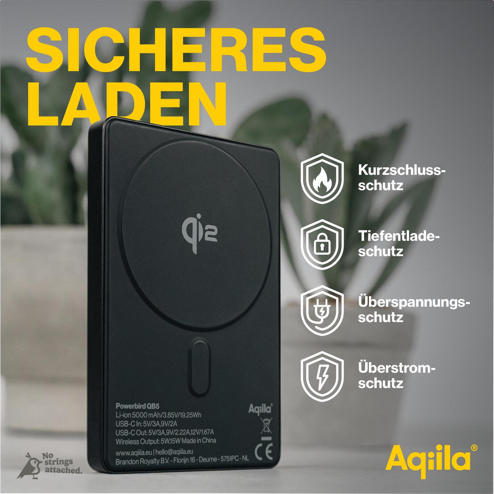 Aqiila® Qi2 wireless Powerbank 5.000 mAh schwarz