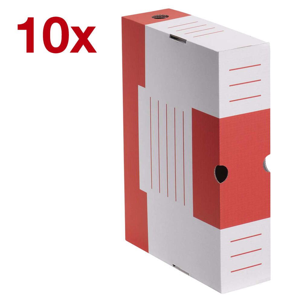 Die Cartonia Archivboxen sind die ideale Lösung für die sichere Aufbewahrung und Organisation deiner losen Dokumente. Mit einem großzügigen Fassungsvermögen von 6,0 Litern bieten diese robusten Kartonboxen ausreichend Platz für alle wichtigen Unterlagen im DIN A4-Format. Die Außenmaße von 8,3 x 34,0 x 25,2 cm machen sie perfekt für Regale und Schränke, während die ansprechende Farbkombination in Weiß und Rot einen modernen Akzent in deinem Büro oder Arbeitsbereich setzt.