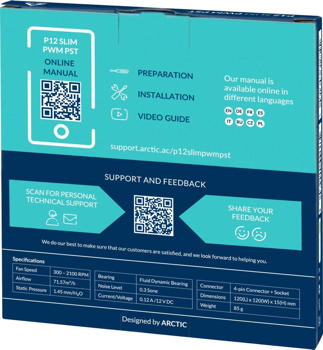 - Anschluss: 4-Pin PWM, 4-Pin PWM Ausgang (Arctic PST, PWM Sharing Technology)