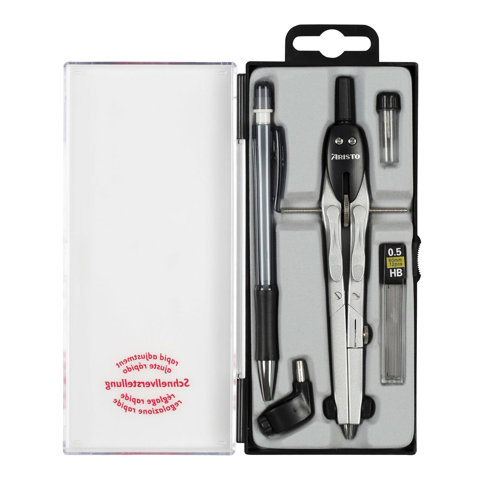 Der ARISTO Zirkel schwarz ist ein hochwertiges Werkzeug, das speziell für präzise Zeichnungen und geometrische Konstruktionen entwickelt wurde. Als Schnellverstellzirkel ermöglicht er eine mühelose Anpassung der Spannweite, sodass du schnell und effizient arbeiten kannst. Die elegante schwarze Farbgebung verleiht dem Zirkel nicht nur ein modernes Aussehen, sondern sorgt auch für eine angenehme Handhabung. Im Lieferumfang enthalten sind praktische Zubehörteile, die den Einsatz des Zirkels noch vielseitiger machen. Neben dem Zirkel erhältst du einen Universal-Adapter, einen Feinminenstift mit einer Stärke von 0,5 mm, eine Ersatznadel sowie eine Bleimine. Darüber hinaus wird eine Ersatzteildose mitgeliefert, die sicherstellt, dass du immer gut ausgestattet bist. Das Kniegelenk und die Mitteltriebsspindel bieten zusätzliche Stabilität und Präzision, was besonders bei anspruchsvollen Zeichnungen von Vorteil ist. Hergestellt aus robustem Metall, ist der ARISTO Zirkel schwarz nicht nur langlebig, sondern auch angenehm in der Handhabung. Die Qualität der Materialien sorgt dafür, dass du auch bei intensiver Nutzung lange Freude an diesem Produkt hast. Egal, ob du Schüler, Student oder ein kreativer Profi bist, dieser Zirkel wird deine Anforderungen erfüllen und dir helfen, deine Ideen präzise umzusetzen. Mit dem ARISTO Zirkel schwarz erhältst du ein zuverlässiges und funktionales Werkzeug, das dir in der Schule, im Studium oder im Beruf wertvolle Dienste leisten wird. Entdecke die Vorteile eines durchdachten Designs und einer hochwertigen Verarbeitung, die dir bei jedem Projekt zur Seite stehen.Technische Daten