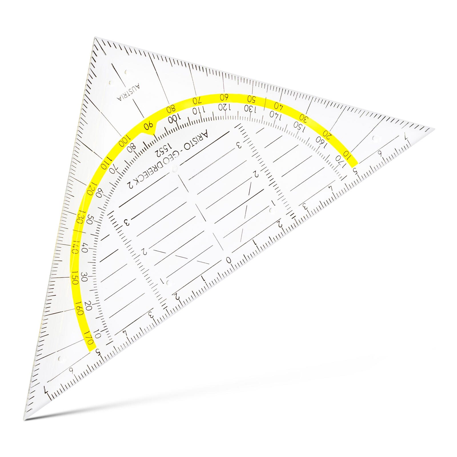 - Besonderheiten: mit integriertem Messstab, Parallel-Lineal, Winkelmesser und Vieleckzeichner