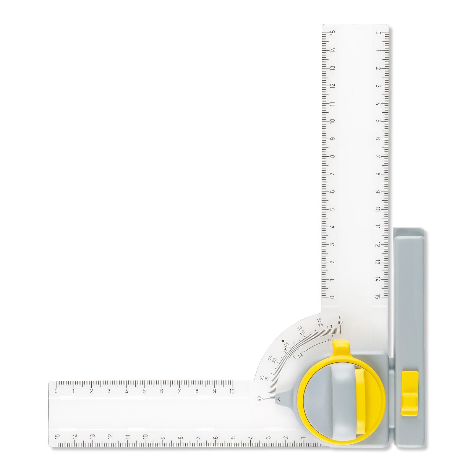 - Besonderheiten: Stoppmechanismus zur Arretierung auf der Zeichenschiene, 15° Rastmechanismus