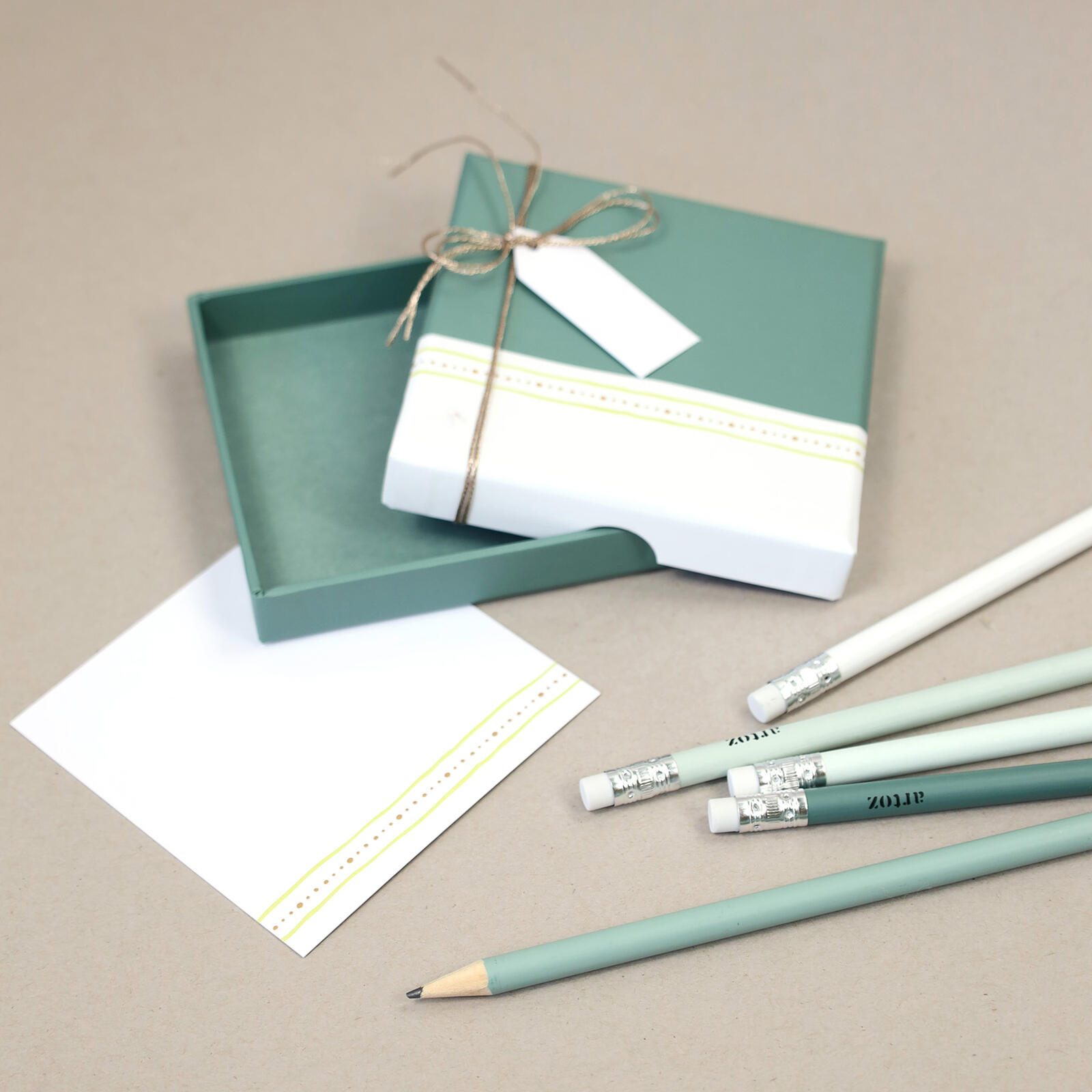 Jeder Bleistift ist sorgfältig verarbeitet und bietet eine ausgewogene Balance zwischen Stabilität und Komfort. Die Kombination aus den dezenten Weiß- und Grüntönen verleiht den Stiften ein modernes und zugleich zeitloses Erscheinungsbild. Obwohl keine spezifische Angabe zur Minenqualität vorliegt, überzeugt das Set durch seine Vielseitigkeit und Funktionalität.