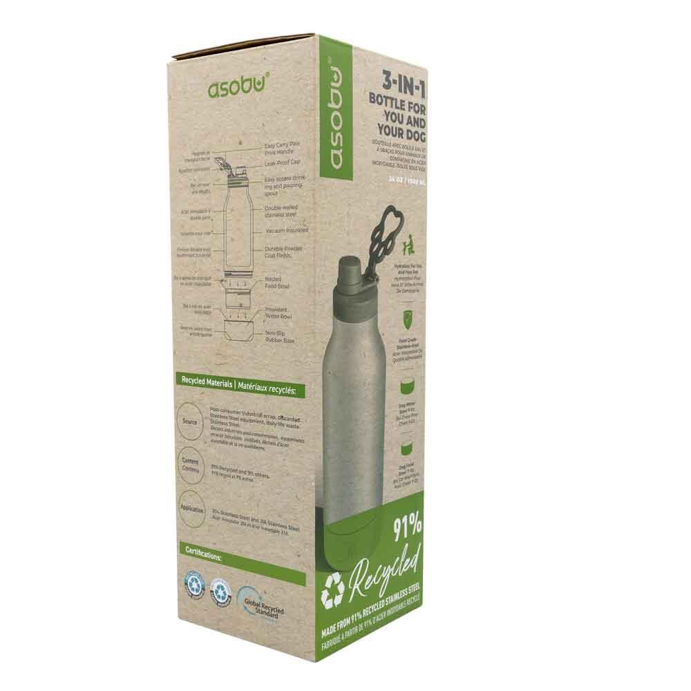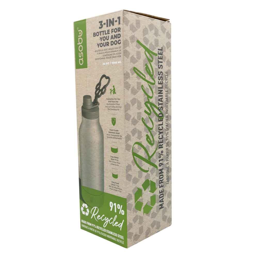 Asobu Dog Bowl Buddy recycelte Edelstahlflasche mit 2 Näpfen - silber (SDB2 recycled SS)