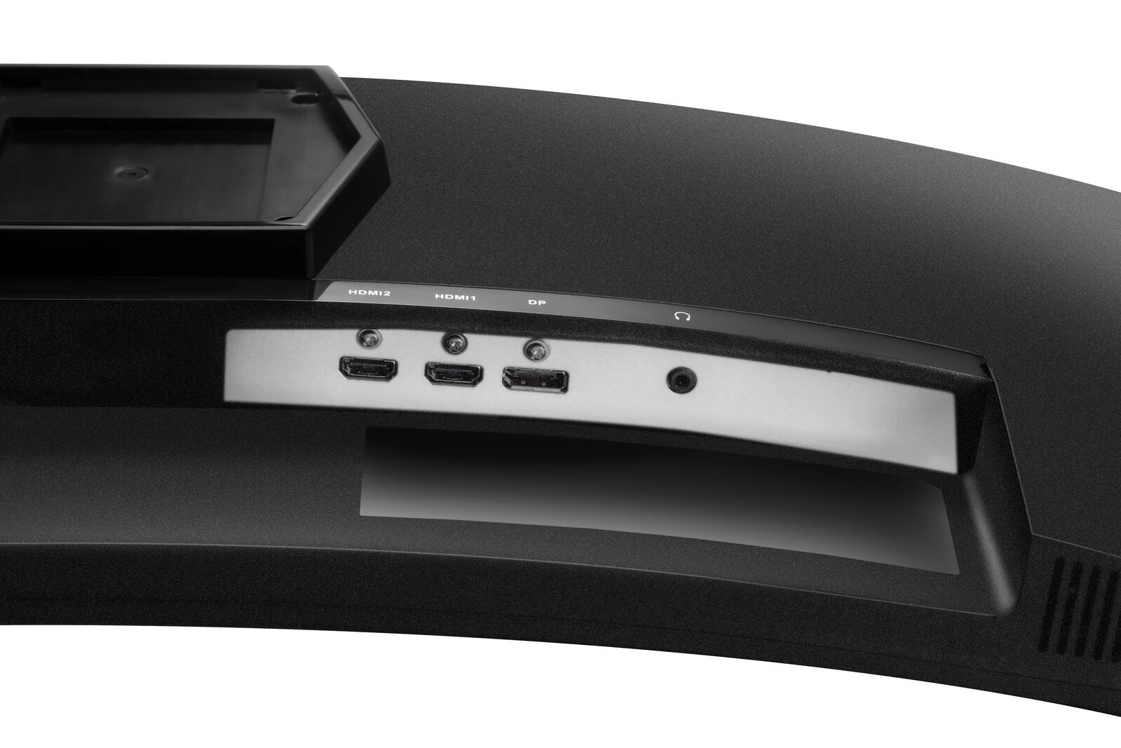 Ein Display-Port 1.2 unterstützt eine Bildwiederholfrequenz von bis zu 165 Hz. Zwei zusätzliche HDMI 2.0-Anschlüsse sind für sekundäre Displays und kompatible Konsolen verfügbar. Außerdem bieten die zwei integrierten Lautsprecher und ein 3,5-mm-Kopfhörerausgang Gamern ein besseres Spielerlebnis.