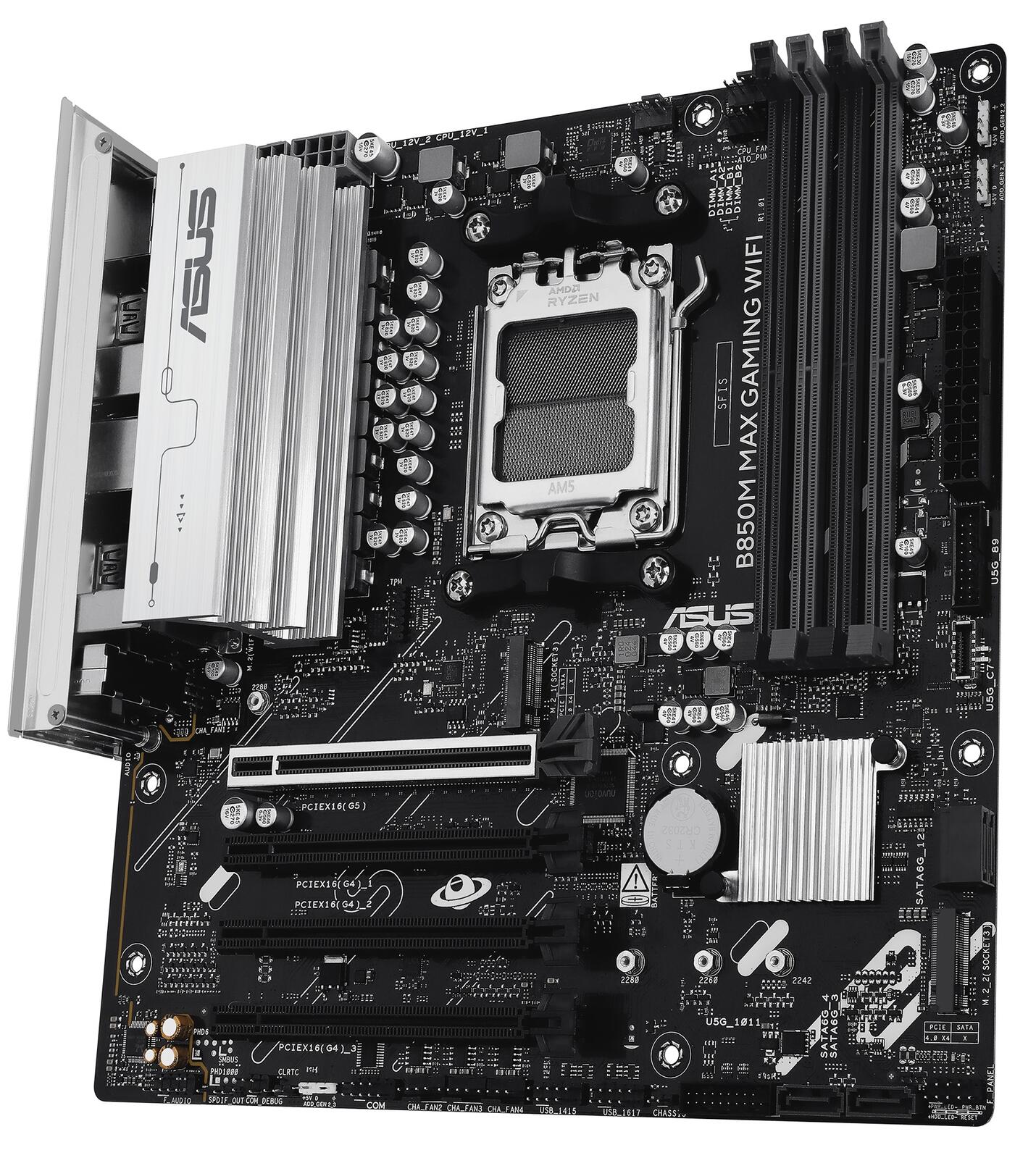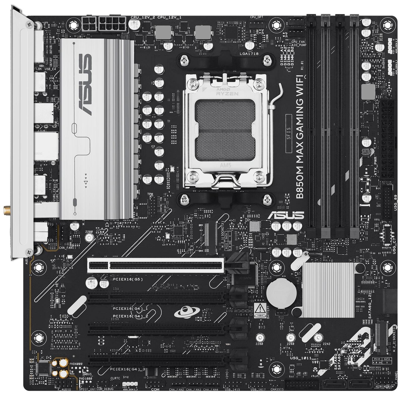 ASUS B850M MAX GAMING WIFI Mainboard AMD AM5, micro-ATX, Ryzen 9000, DDR5 Speicher, PCIe 5.0, WiFi 6
