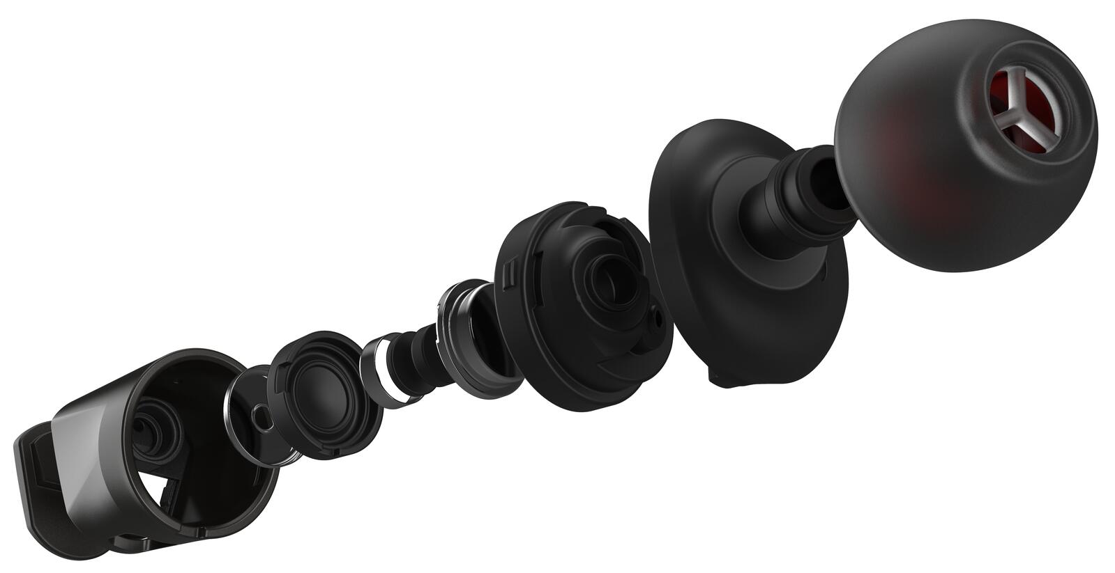 - Ein ergonomisches Design mit ultrasoften Ear Fins und Spitzen aus LSR sorgt für perfekten Tragekomfort.