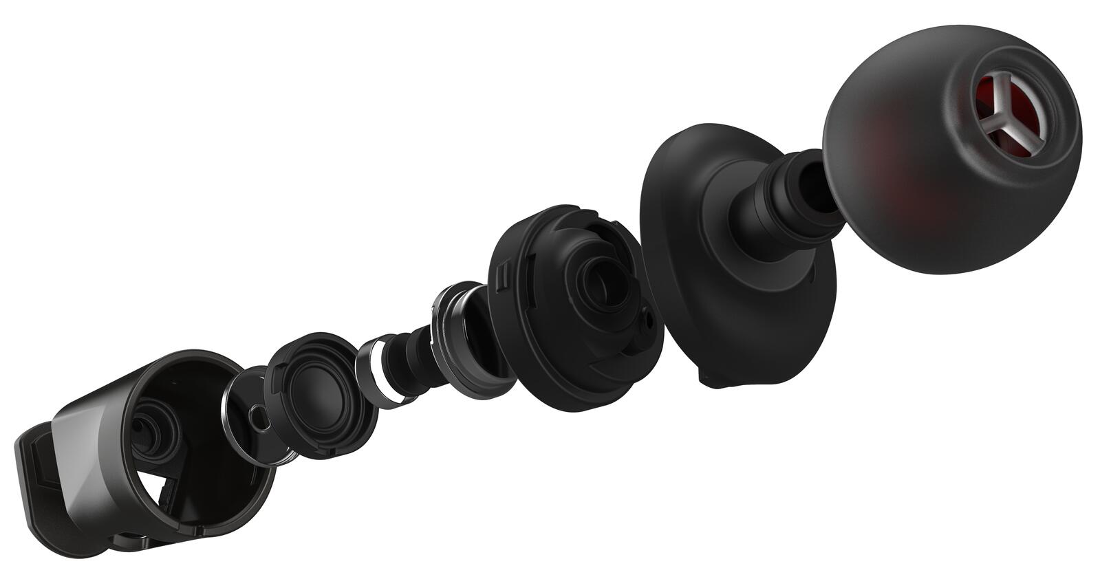 - Ergonomisches Design mit ultrasoftem Flüssigsilikonkautschuk (LSR) und Ohrstöpseln für einen bequemen Sitz