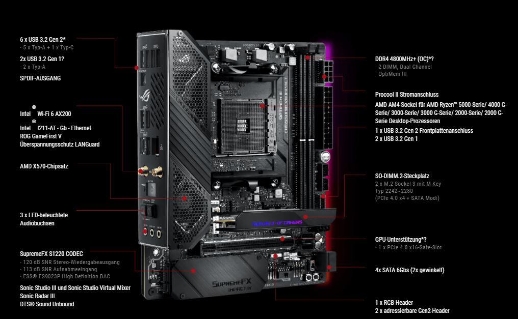 ASUS ROG Crosshair VIII Impact X570 ITX Mainboard Sockel AM4