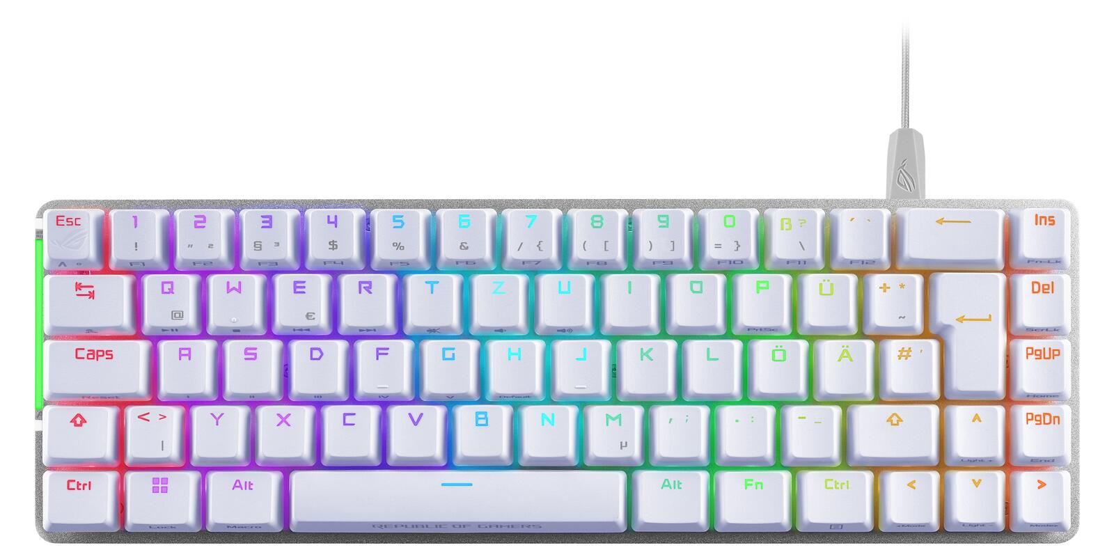 ASUS ROG Falchion Ace Gaming Tastatur, weiß Deutsches Layout, 65% Formfaktor, RGB, Touch-Panel, mechanische ROG NX-Switches