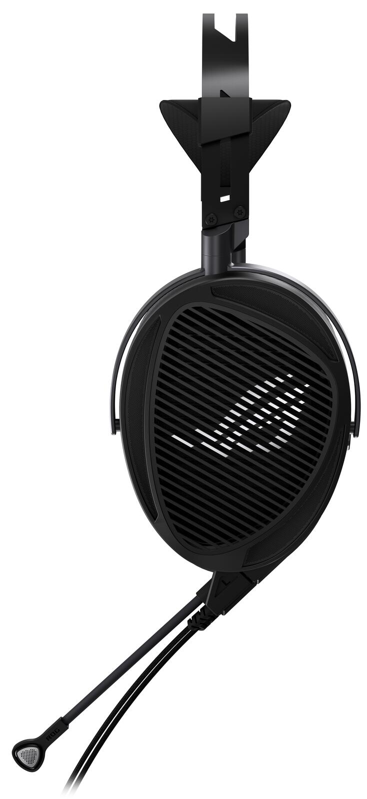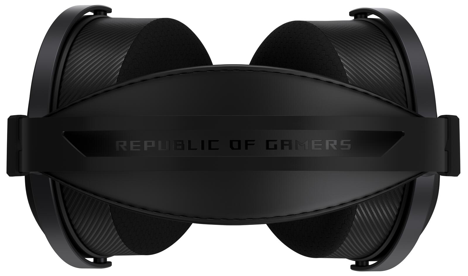 Weiches, verstellbares Kopfband, robuster Metallrahmen und Scharniere sowie elegante Ohrmuscheln mit charakteristischen ROG-Elementen