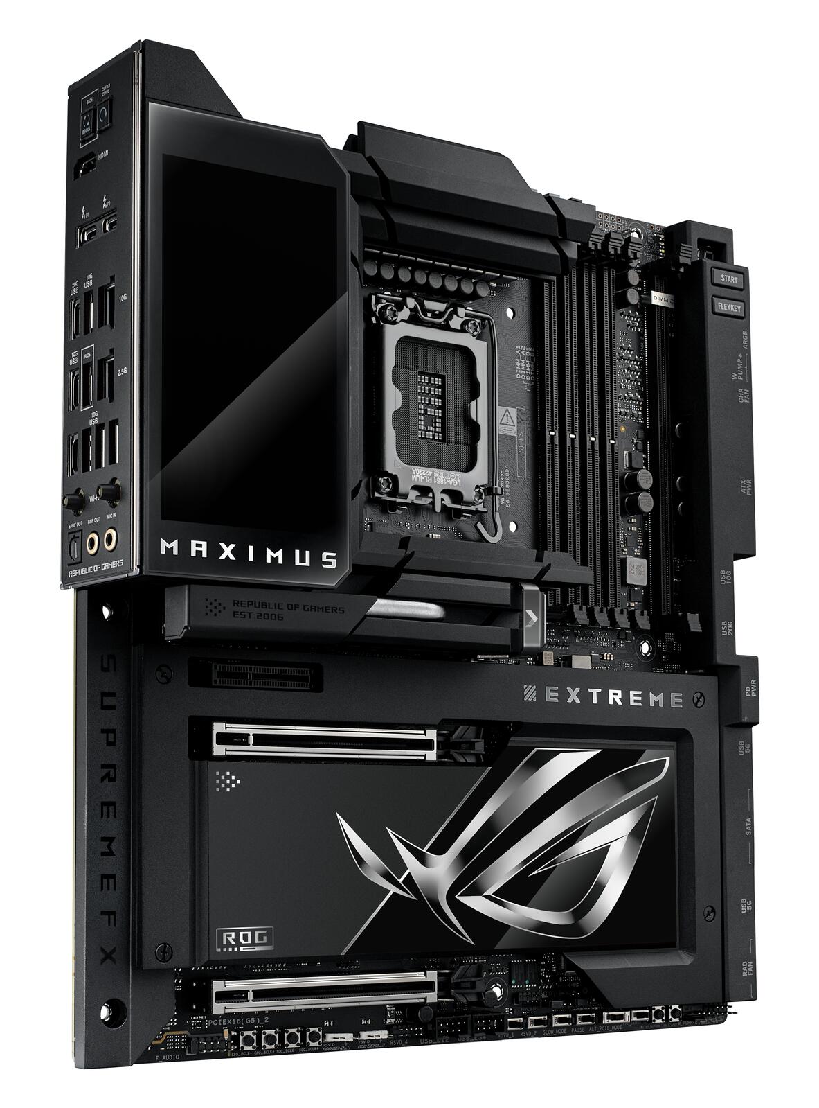 Das ROG Maximus Z890 Extreme ist der ultimative Ausdruck modernster Mainboard-Technologie und Leistung. Entdecke die Obergrenze der Intel® Core™ Ultra Series 2 Prozessoren, DDR5-Module, PCIe® 5.0 Grafikkarten, NVMe-Speicher, USB-Konnektivität, Thunderbolt™-Funktionalität und vieles mehr - und das alles verpackt in einem eleganten Paket mit einem 5-Zoll-LCD-Farbdisplay, das je nach persönlichem Geschmack lebendige Bilder oder Live-Systemstatistiken anzeigen kann.
