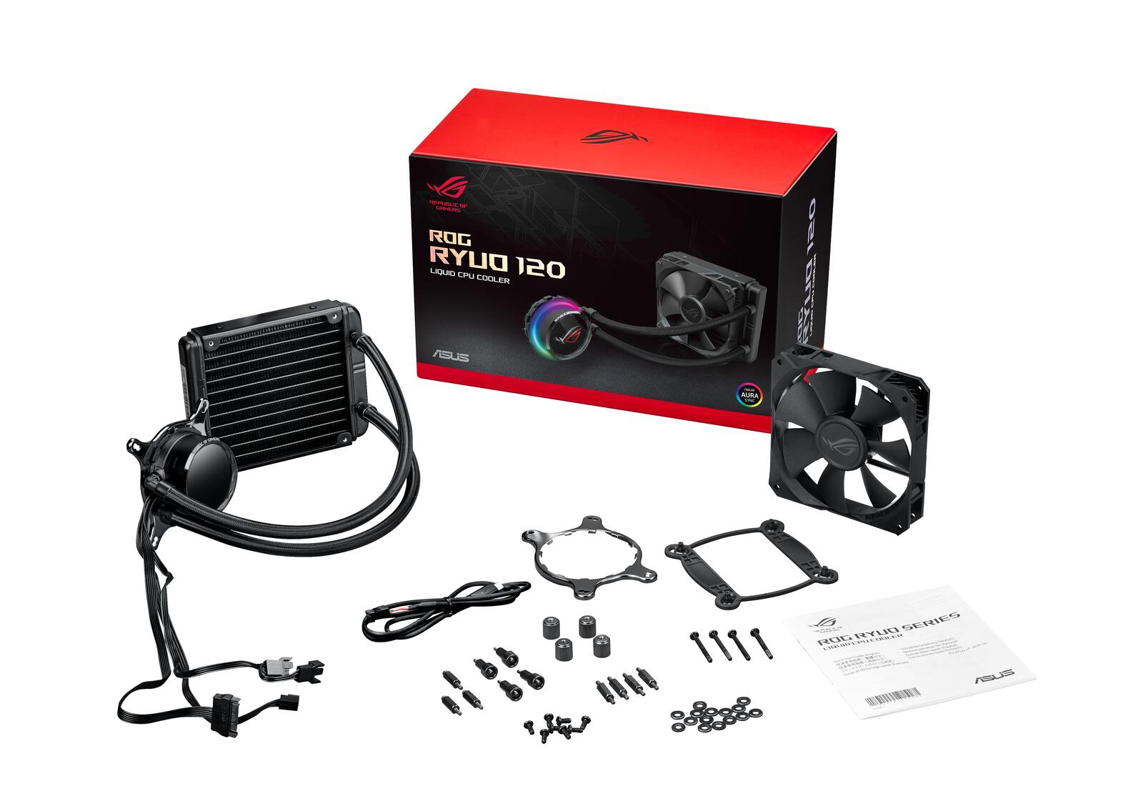 ASUS ROG Ryuo 120 All-in-One CPU-Wasserkühlung (1,77 Zoll OLED Display, Aura Sync RGB, ROG-120 mm-Lüfter)