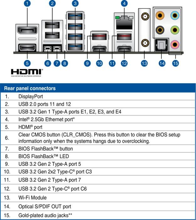 - Hochleistungsnetzwerke: Integriertes Intel® WiFi 6E (802.11ax) und Intel® 2.5 Gb Ethernet mit ASUS LANGuard