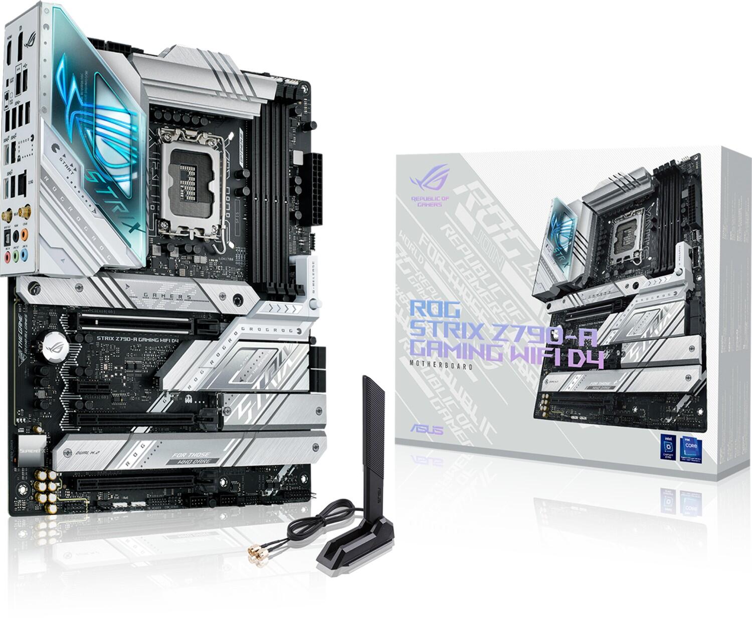 Intel® Z790 LGA 1700 ATX-Mainboard mit 16 + 1 Power Stages, DDR4-Speicherunterstützung, vier M.2-Steckplätzen, PCIe® 5.0 x16 SafeSlot mit Q-Release, WiFi 6E, USB 3.2 Gen 2x2 Type-C® Anschluss an der Rückseite und zusätzlichem Anschluss an der Vorderseite mit PD 3.0 bis zu 30W, AI Overclocking, AI Cooling II und Aura Sync RGB-Beleuchtung