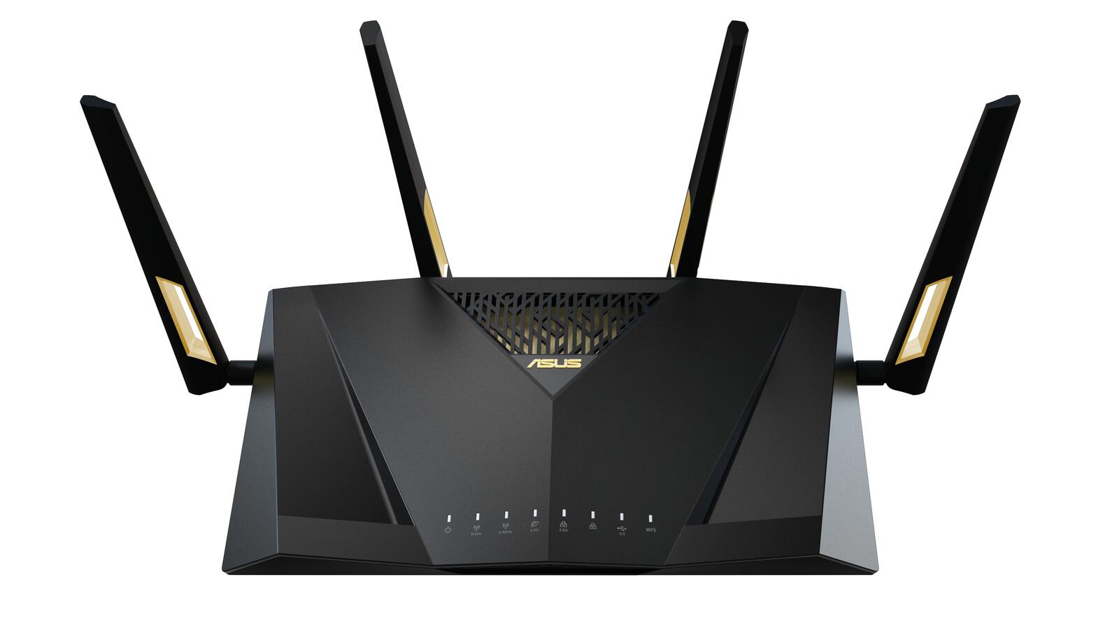 AX6000 Dual Band WiFi 6 Router, Dual 2.5G Port, 2.0 GHz Quad-Core CPU, AiProtection Pro, WPA3, Kindersicherung, Mesh WiFi Unterstützung, Adaptive QoS, Port Forwarding, WAN Aggregation, kostenlose Netzwerksicherheit und AiMesh Unterstützung WiFi 6 der neuen Generation – Genießen Sie ultraschnelle Geschwindigkeiten von bis zu 6000 Mbps mit dem neuesten WiFi 6 (802.11ax) und 160MHz-Kanälen. Duale 2.5G-Ports – Traffic über 2.5G-Ports hat höchste Priorität; flexible WAN/LAN-Netzwerkport-Konfigurationen. Extreme Quad-Core-CPU-Leistung – Die leistungsstarke 2,0 GHz Quad-Core-64-Bit-CPU hebt die Rechenleistung auf die nächste Stufe. Erweiterte Abdeckung – Der exklusive ASUS RangeBoost Plus verbessert die Signalreichweite und die Gesamtabdeckung. Kommerzielle Sicherheit für Ihr Heimnetzwerk – ASUS AiProtection Pro, powered by Trend Micro™, mit WPA3 und fortschrittlicher Kindersicherung zum Schutz Ihres Heims – lebenslang kostenlos.