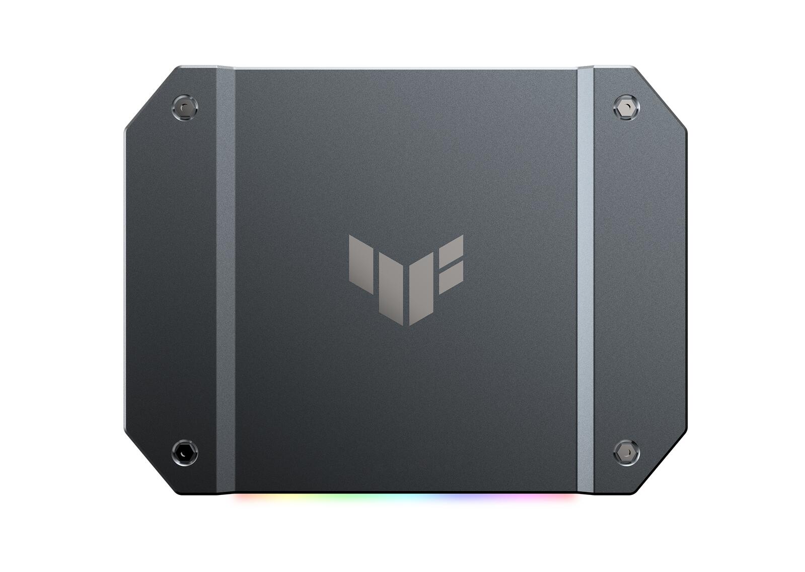 Die Vorderseite der ASUS TUF Gaming Capture Box wird von einer RGB-Leiste beleuchtet, die den Funktionsstatus anzeigt.