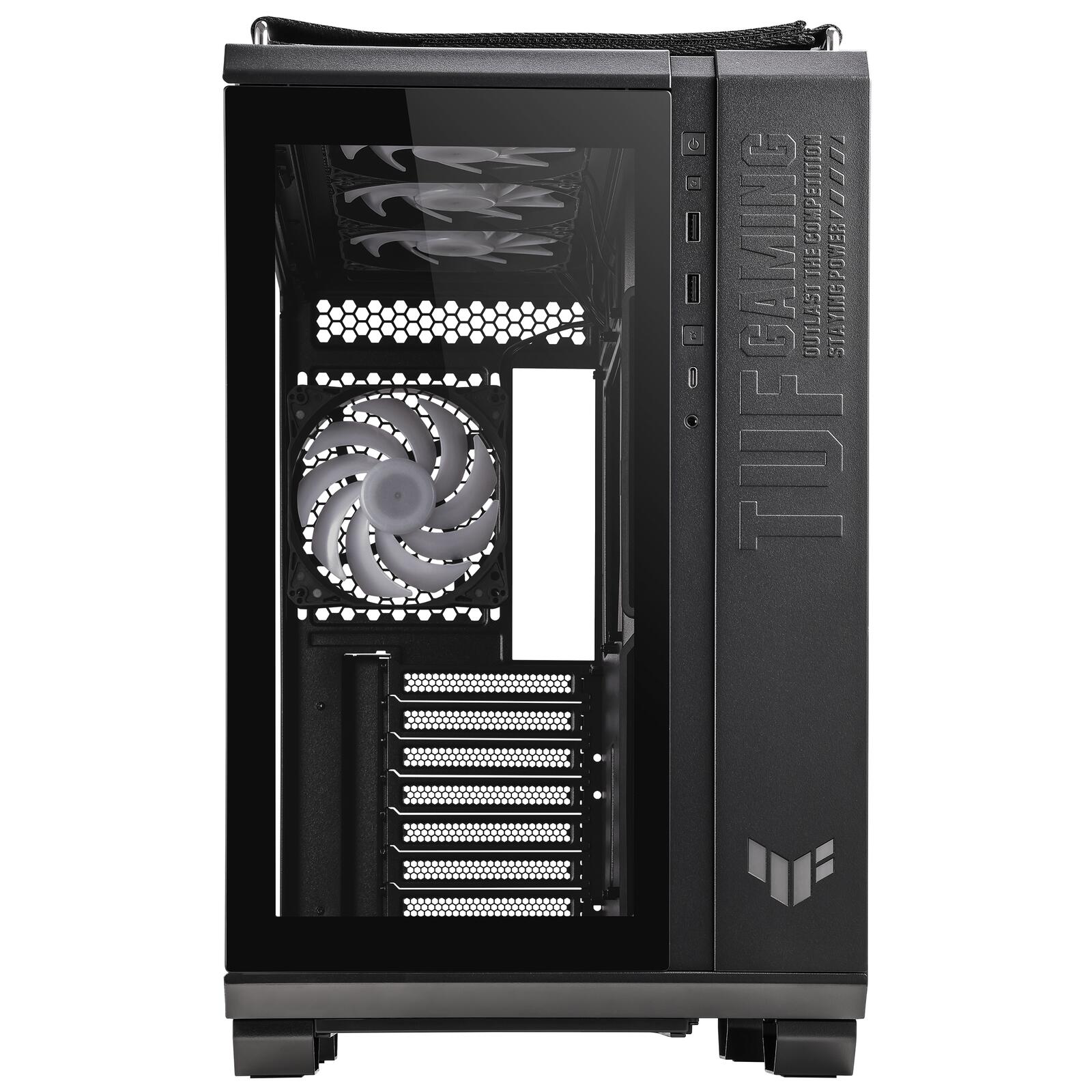 - Frontpanel High-Speed USB Typ-C: Die Vorderseite des TUF Gaming GT502 PLUS verfügt über einen USB 3.2 Gen 2 Typ-C-Anschluss, der für Übertragungsgeschwindigkeiten von bis zu 10 Gbit/s reif ist
