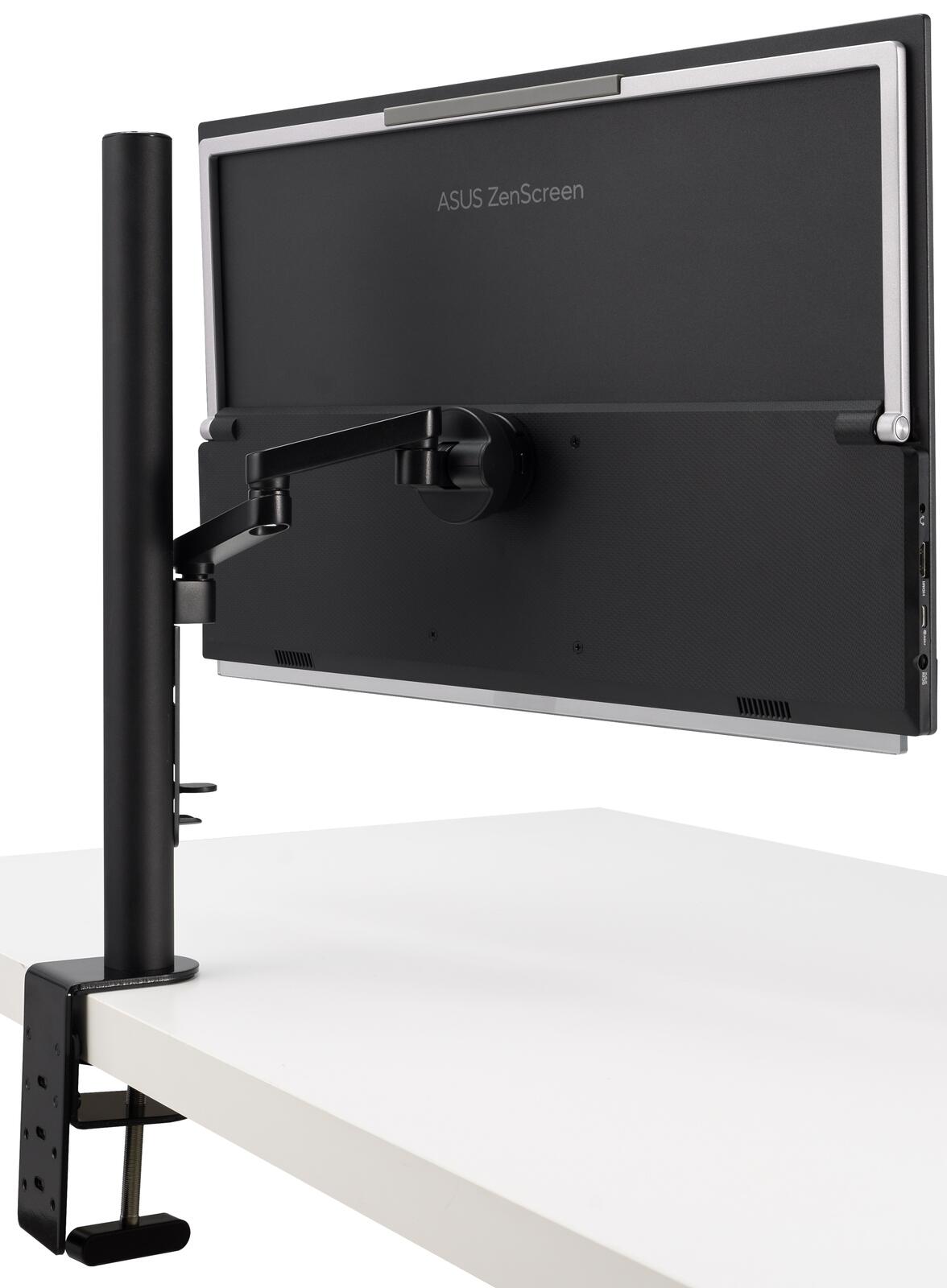 Das einzigartige Trennwandhaken-Kit hilft Ihnen, wertvollen Platz auf dem Schreibtisch zu schaffen, da Sie den ZenScreen MB229CF damit an Trennwänden oder Raumteilern befestigen können. Mit dem Aufhängeset, das eine Höhenverstellung von 150 mm bietet, können Sie den Bildschirm auf Augenhöhe anheben oder absenken.C-Klammer-Arm