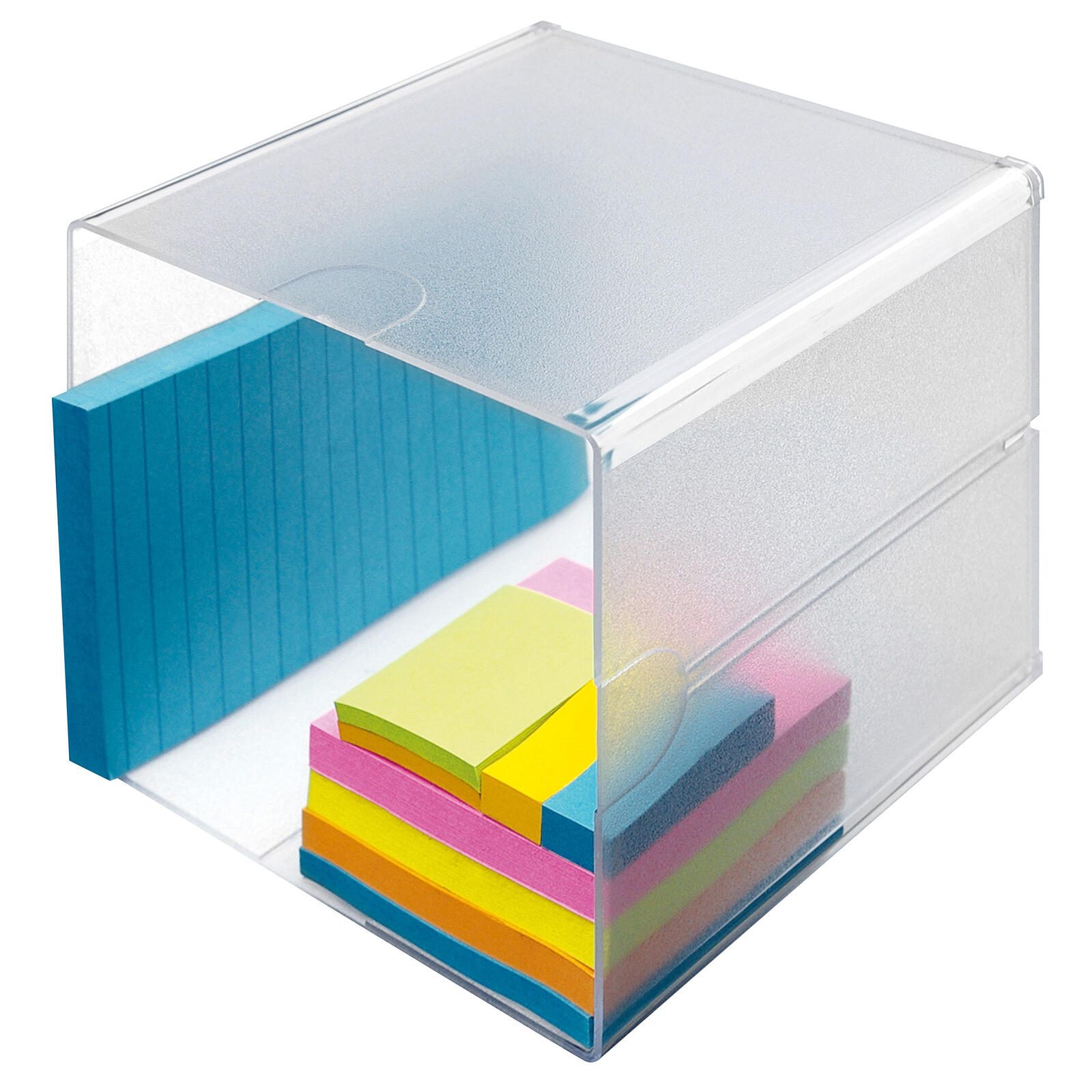 Die Aufbewahrungsbox Deflecto "Cube" ist die ideale Lösung für eine organisierte und stilvolle Aufbewahrung. Mit ihren kompakten Außenmaßen von 15,3 x 15,3 x 18,3 cm bietet sie ausreichend Platz für verschiedene Büroutensilien, ohne dabei viel Raum einzunehmen. Das transparente Design ermöglicht es dir, den Inhalt der Box auf einen Blick zu erkennen, was die Suche nach benötigten Utensilien erheblich erleichtert. Hergestellt aus hochwertigem Polystyrol, zeichnet sich die Box durch ihre Langlebigkeit und Robustheit aus. Der integrierte Deckel schützt den Inhalt vor Staub und sorgt dafür, dass alles ordentlich verstaut ist. Zudem ist die Aufbewahrungsbox stapelbar, was dir hilft, den verfügbaren Platz optimal zu nutzen und eine aufgeräumte Umgebung zu schaffen. Ob im Büro, im Homeoffice oder im Wohnbereich, die Aufbewahrungsbox "Cube" passt sich deinem Lebensstil an und ist vielseitig einsetzbar. Die einfache Handhabung und das praktische Design machen sie zu einem unverzichtbaren Accessoire für jeden, der Wert auf Ordnung und Übersichtlichkeit legt. Mit der Aufbewahrungsbox Deflecto "Cube" bringst du nicht nur Struktur in deinen Alltag, sondern auch einen modernen Akzent in deine Einrichtung. Sie ist eine hervorragende Wahl für alle, die Funktionalität und Ästhetik kombinieren möchten.Technische Daten