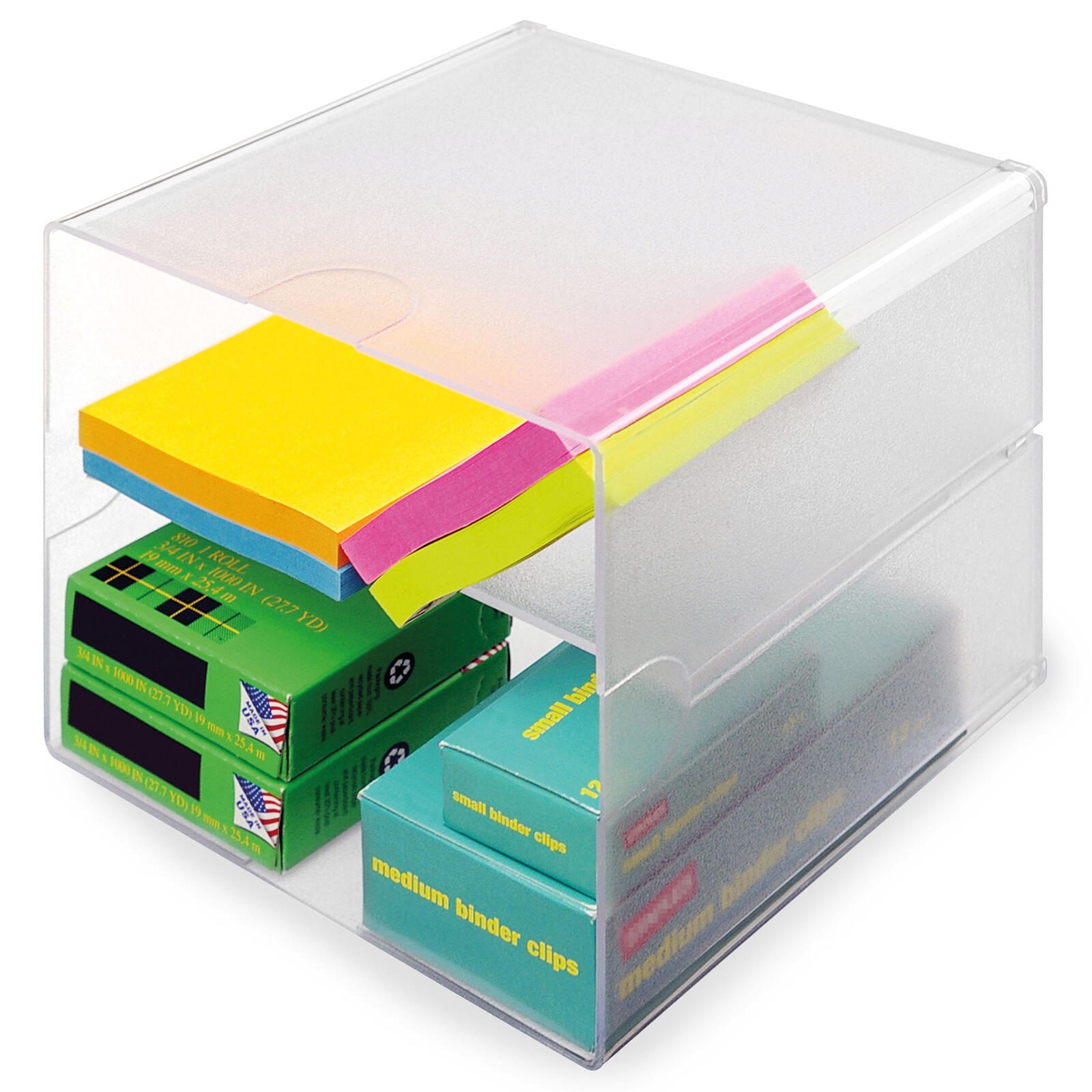 Die Aufbewahrungsbox Deflecto "Cube" ist die ideale Lösung für eine ordentliche und stilvolle Aufbewahrung deiner Büroutensilien. Mit ihren kompakten Außenmaßen von 15,3 x 15,3 x 15,3 cm passt sie perfekt auf deinen Schreibtisch oder in Regale, ohne viel Platz in Anspruch zu nehmen. Das transparente Design ermöglicht es dir, den Inhalt auf einen Blick zu erkennen, was die Suche nach wichtigen Utensilien erheblich erleichtert. Hergestellt aus hochwertigem Polystyrol, bietet die Box nicht nur eine ansprechende Optik, sondern auch eine hohe Stabilität. Der praktische Deckel schützt den Inhalt vor Staub und äußeren Einflüssen, sodass deine Büroutensilien stets sauber und ordentlich sind. Zudem ist die Box stapelbar, was dir die Möglichkeit gibt, mehrere Boxen platzsparend übereinander zu stapeln und so noch mehr Ordnung zu schaffen. Ob du Stifte, Notizblätter oder andere kleine Gegenstände aufbewahren möchtest, die Aufbewahrungsbox Deflecto "Cube" ist vielseitig einsetzbar und passt sich deinen Bedürfnissen an. Die einfache Handhabung und das durchdachte Design machen es dir leicht, deine Arbeitsumgebung zu organisieren und zu verschönern. Die Box ist nicht lebensmittelecht und daher nicht für die Aufbewahrung von Lebensmitteln geeignet. Sie ist jedoch perfekt für den Einsatz im Büro, in der Schule oder zu Hause. Mit der Aufbewahrungsbox Deflecto "Cube" schaffst du nicht nur Ordnung, sondern setzt auch einen modernen Akzent in deinem Raum.Technische Daten