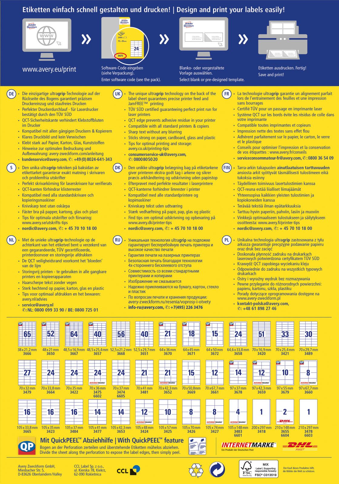Die Etiketten sind vielseitig einsetzbar und eignen sich besonders als Universal- oder Adressetiketten. Sie sind kompatibel mit verschiedenen Druckverfahren, darunter Farb-Laser-, Schwarz-Weiß-Laser- und Inkjet-Drucker. So kannst Du sie flexibel für unterschiedliche Anwendungen im Büro oder zu Hause verwenden.