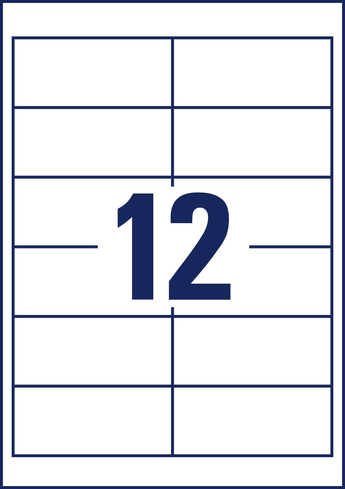 Diese AVERY Zweckform Etiketten bieten eine praktische Lösung zum einfachen und sauberen Beschriften. Jedes Etikett misst 97,0 x 42,3 mm und ist rechteckig geformt. Die Etiketten sind auf A4-Bögen angeordnet, wodurch sie sich gut in handelsübliche Drucker einlegen lassen. Insgesamt enthält eine Packung 780 Etiketten, verteilt auf 65 Blatt.