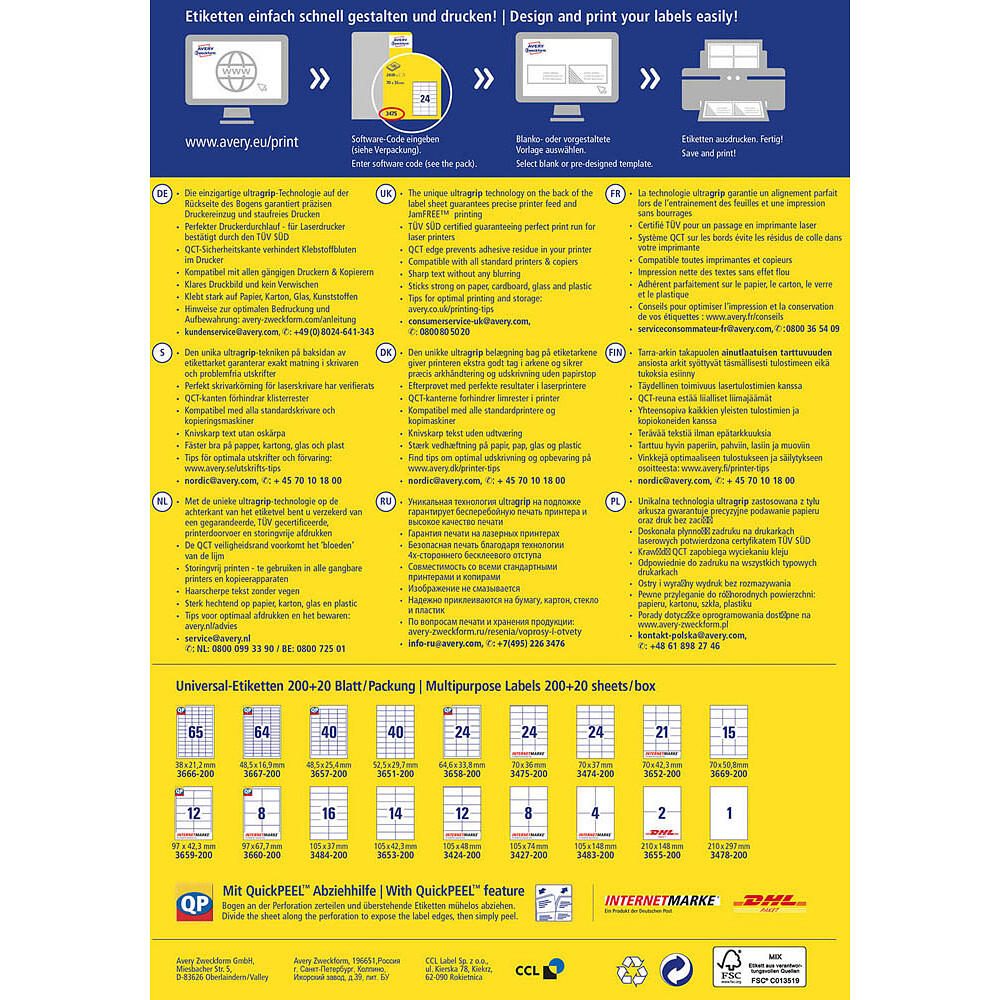 Bedrucken Sie die Universal-Etiketten von Avery Zweckform mit allen gängigen Druckern und Kopierern. Die Etiketten garantieren einen staufreien Druckerdurchlauf. Druckerdurchlauf für Laserdrucker getestet und bestätigt durch TÜV. Diese Aufkleber