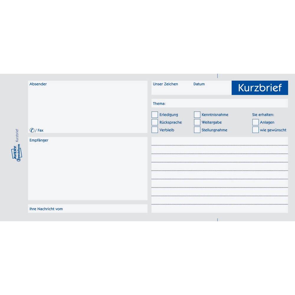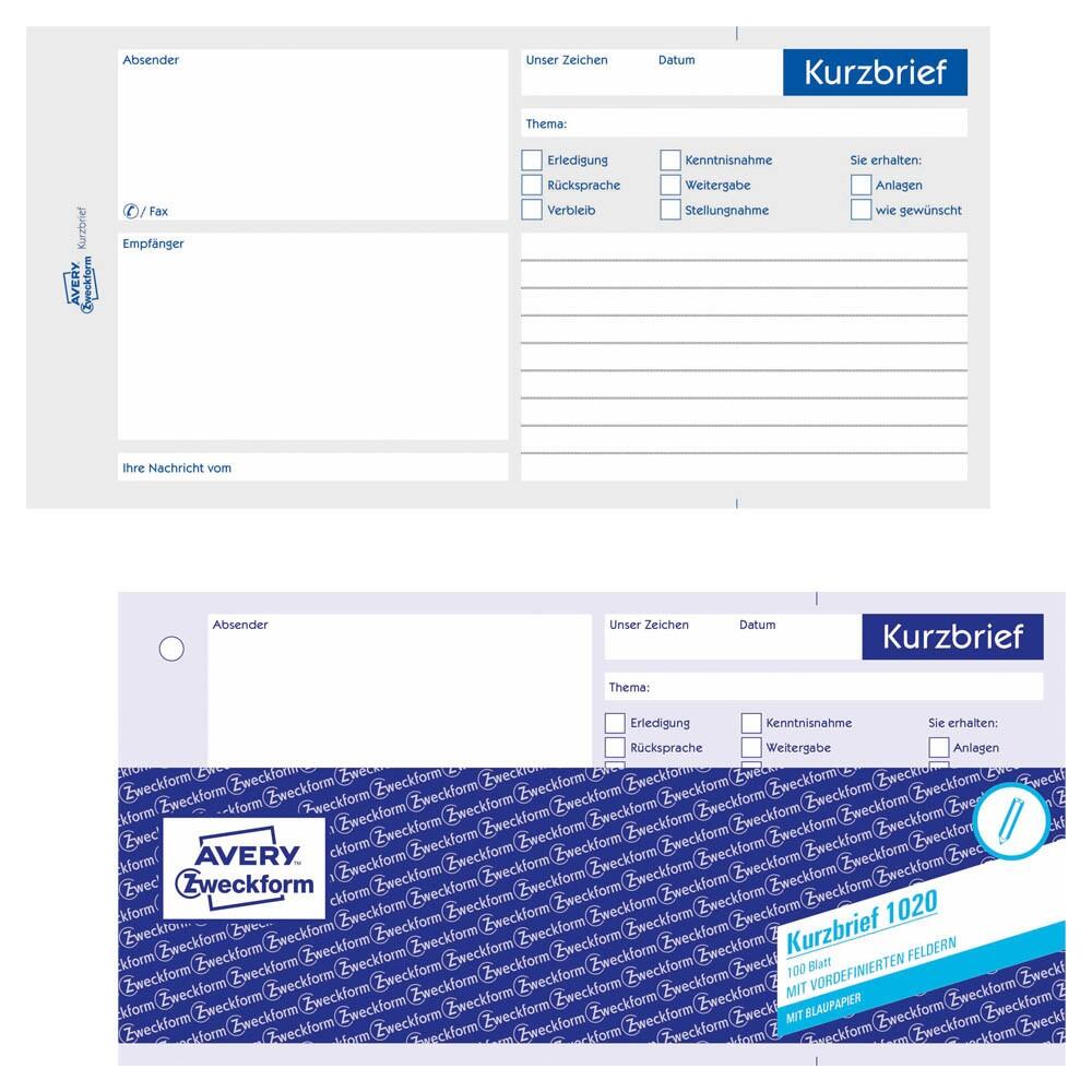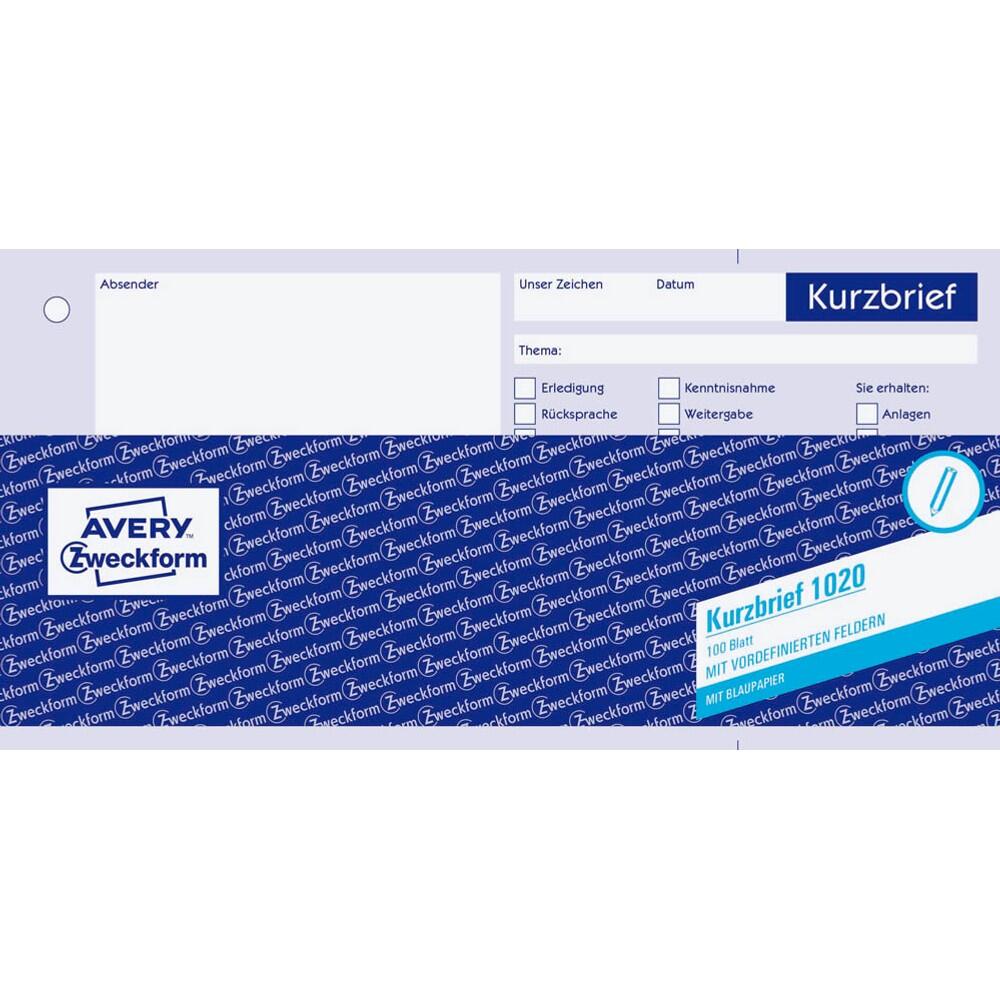 AVERY Zweckform Kurzbrief 1/3 DIN A4 Formularbuch 1020 - 100 Blatt