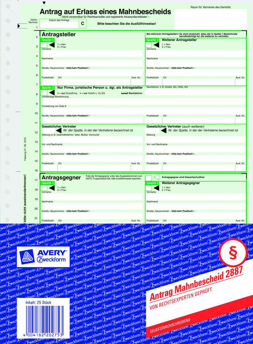 AVERY Zweckform Mahnbescheid für maschinelle Bearbeitung Formulare 2887