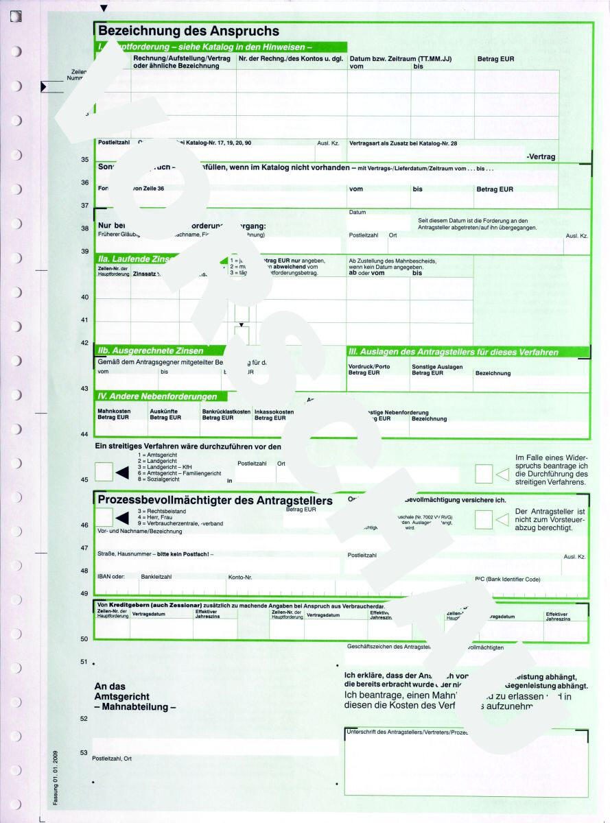 - Formular: Mahnbescheid für maschinelle Bearbeitung