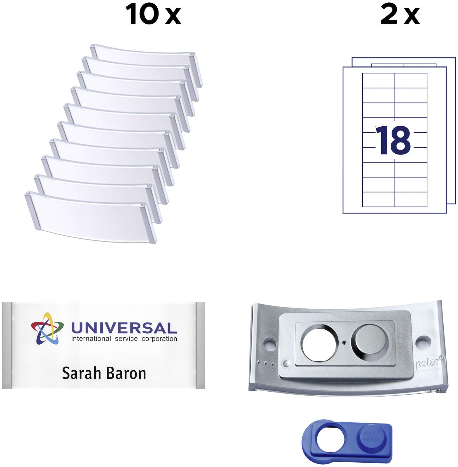 Die Lieferung umfasst 10 Namensschilder, 32 Einsteckschilder und 2 Bögen, sodass Sie flexibel und umfangreich ausgestattet sind. Die Kombination aus langlebigem Material und durchdachtem Design gewährleistet eine einfache Handhabung und eine professionelle Präsentation Ihrer Mitarbeiter oder Teilnehmer.